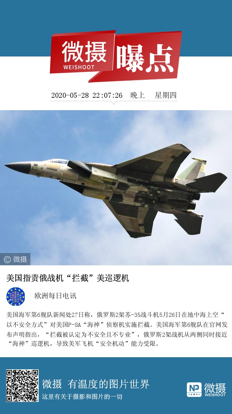 美国海军第6舰队新闻处27日称,俄罗斯2架苏-35战斗机5月26日在地中海上空“以不安全方式”对美国P-8A“海神”侦察机实施拦截。美国海军第6舰队在官网发布声明指出,“拦截被认定为不安全且不专业”,俄罗斯2架战机从两侧同时接近“海神”巡逻机,导致美军飞机“安全机动”能力受限。