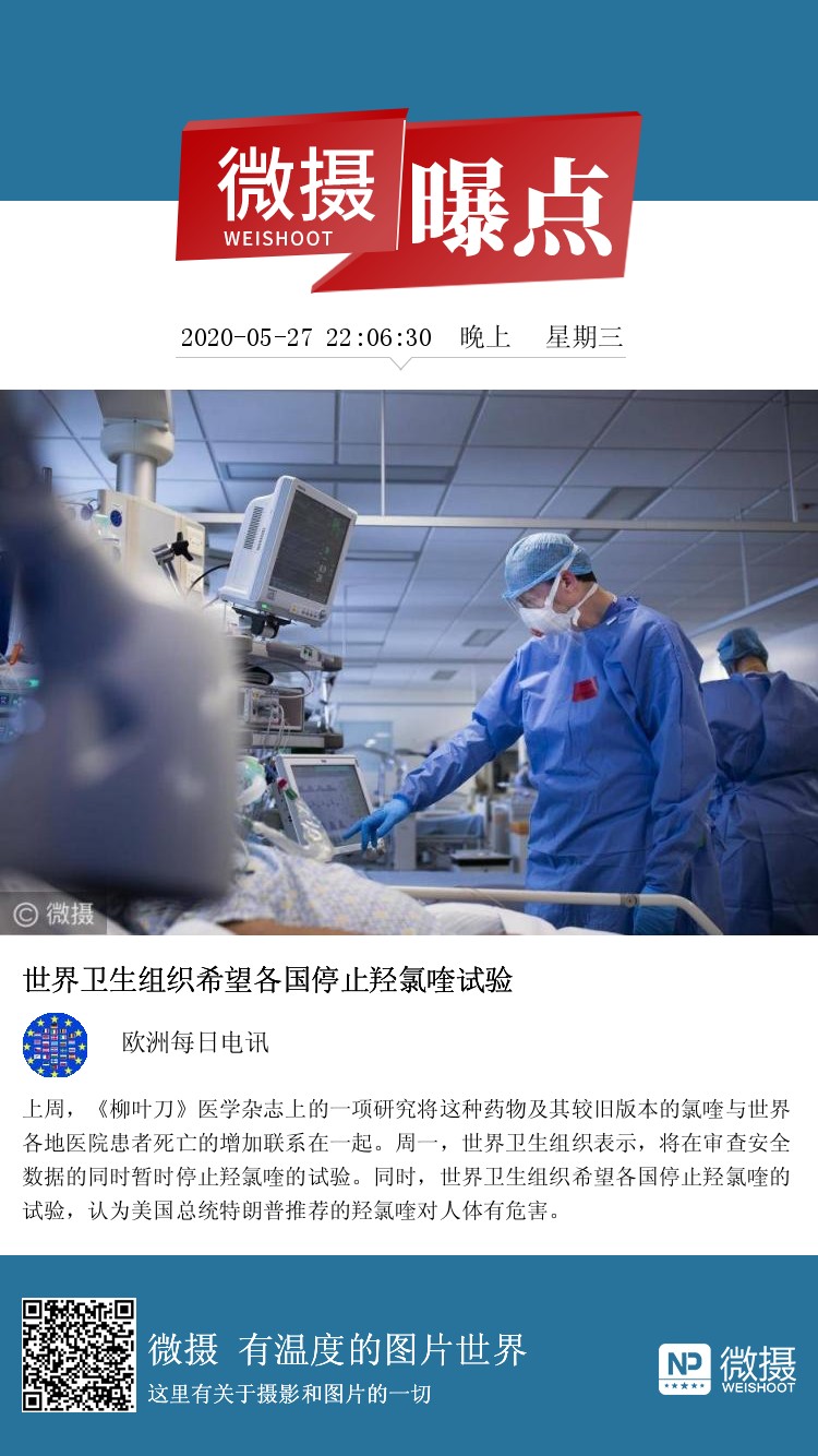 上周,《柳叶刀》医学杂志上的一项研究将这种药物及其较旧版本的氯喹与世界各地医院患者死亡的增加联系在一起。周一,世界卫生组织表示,将在审查安全数据的同时暂时停止羟氯喹的试验。同时,世界卫生组织希望各国停止羟氯喹的试验,认为美国总统特朗普推荐的羟氯喹对人体有危害。