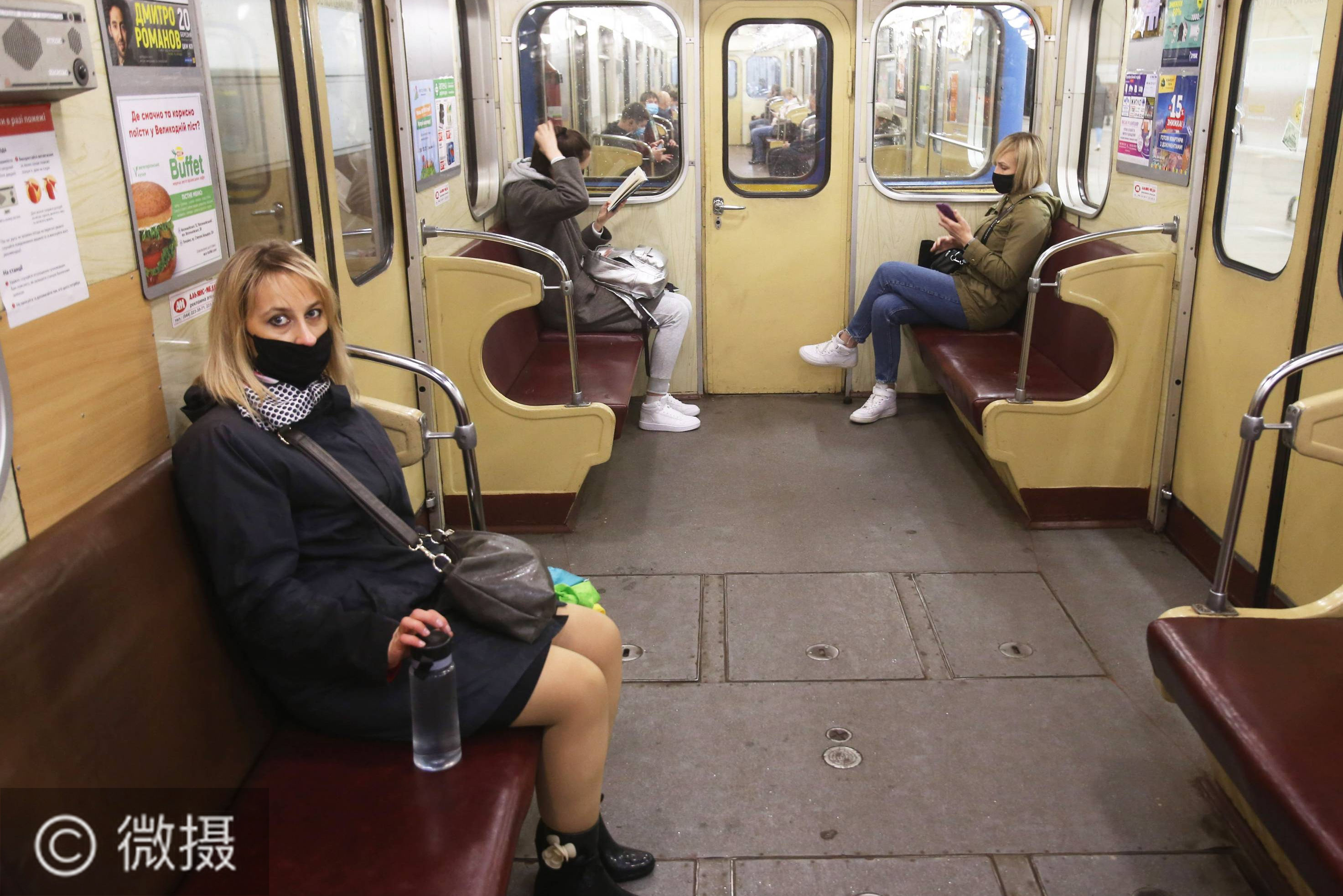 5月25日,在乌克兰基辅市,乘客佩戴口罩搭乘地铁列车。乌克兰首都基辅的所有地铁线路自当地时间25日上午开始恢复运营,乘客须按规定佩戴口罩并彼此保持1.5米距离。受新冠疫情影响,自3月17日起基辅的地铁暂停运行。新华社发(谢尔盖·斯塔拉斯坚科摄)