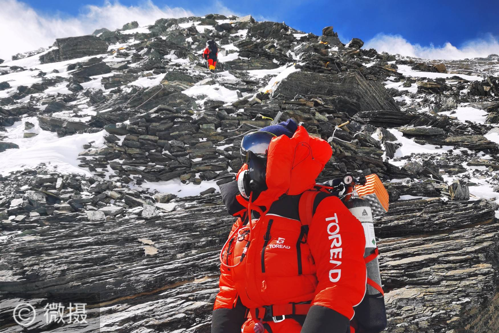 微摄图播|2020珠峰高程测量(17):5月26日,冲顶队员从海拔7790米的二号营地出发,前往海拔8300米的突击营地。据悉,8名冲顶队员26日11时从海拔7790米的二号营地出发,当日将抵达海拔8300米的突击营地。预计27日凌晨冲顶。新华社特约记者 扎西次仁 摄