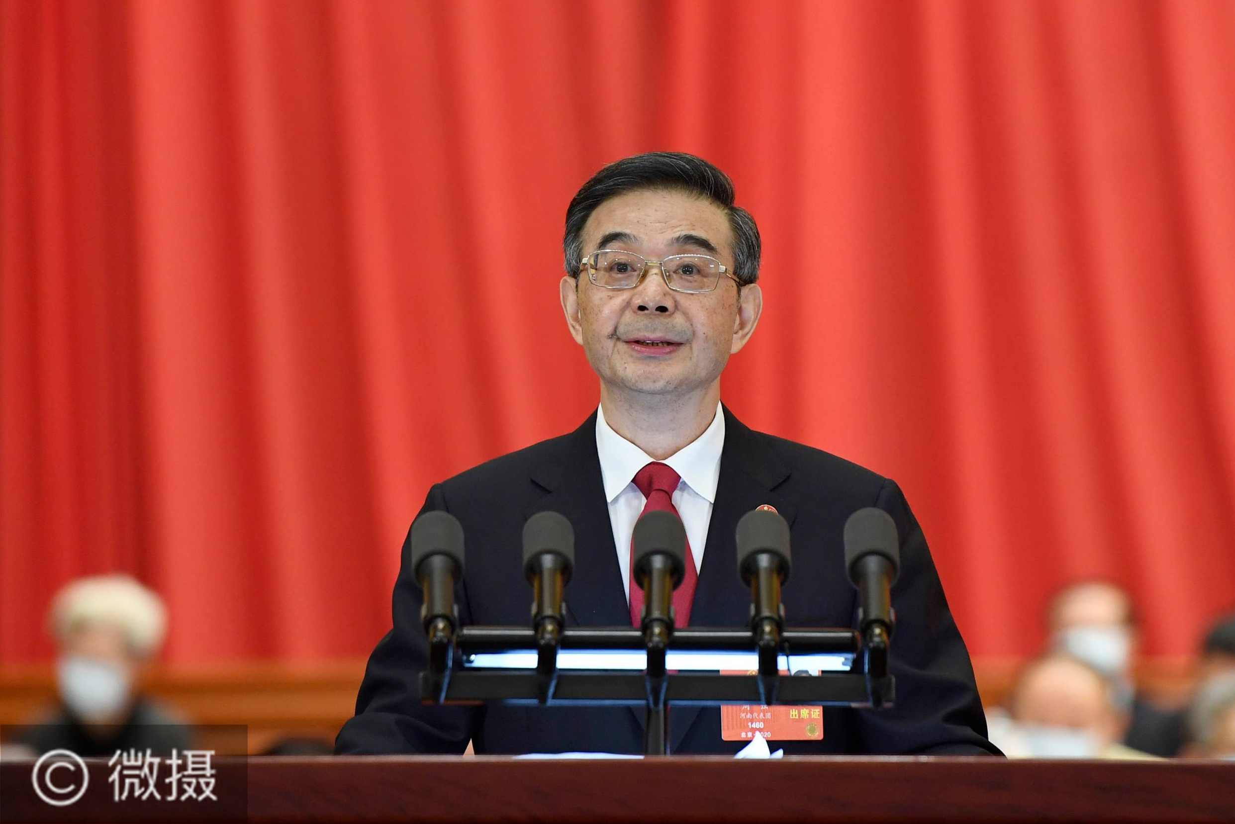5月25日,十三届全国人大三次会议下午在人民大会堂举行第二次全体会议,习近平等党和国家领导人出席会议。 受全国人大常委会委托,栗战书委员长向大会报告全国人大常委会工作。最高人民法院院长周强代表最高人民法院作工作报告。新华社记者 岳月伟 摄