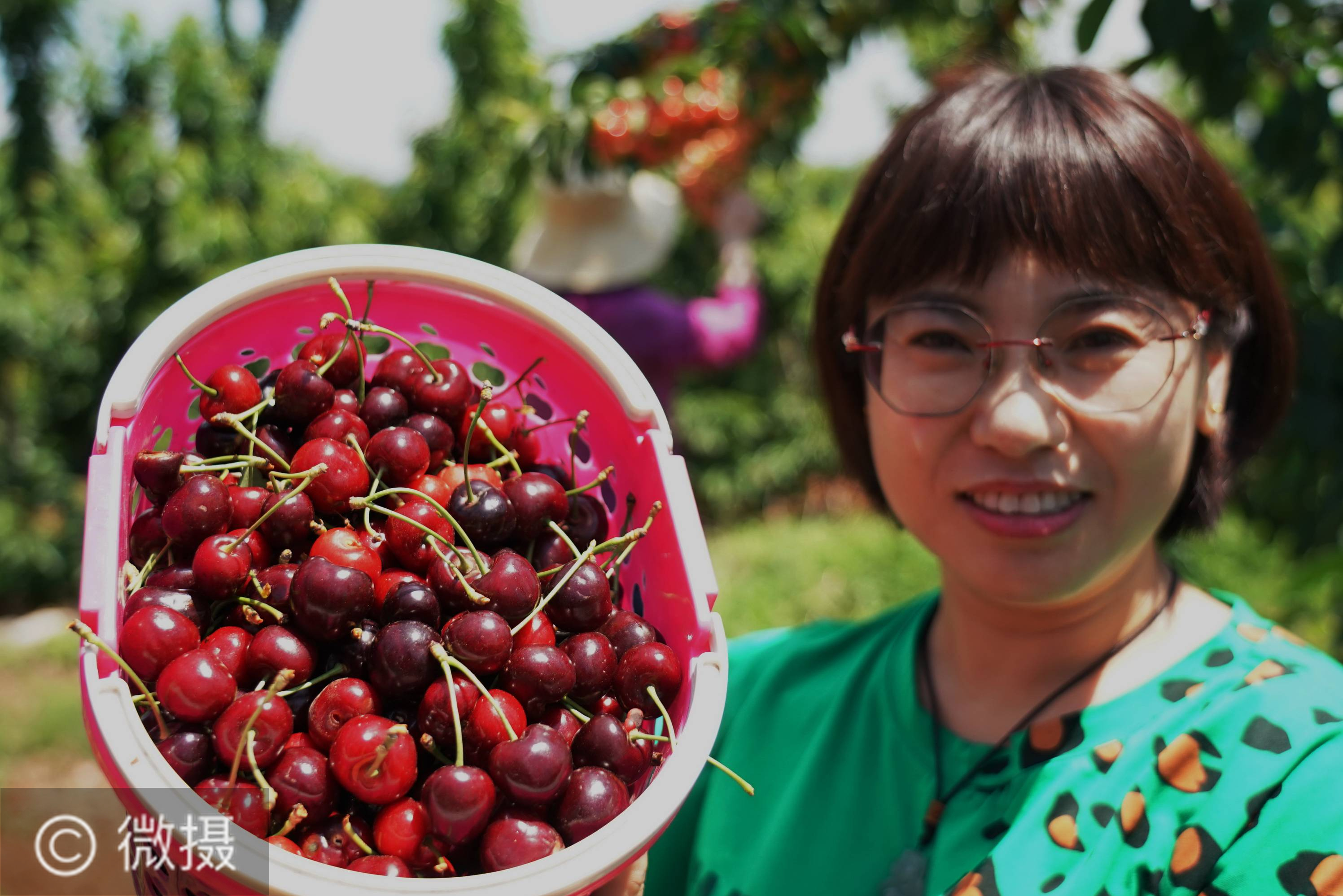 5月24日,游客在滦州市九百户镇鸡冠山生态产业园展示自己刚采摘的大樱桃。近日,河北省滦州市九百户镇的大樱桃进入成熟采摘期,果农抢抓农时采摘上市。近年来,该市发展林果种植业达10万亩,带动近1.2万农户增收。新华社记者 杨世尧 摄
