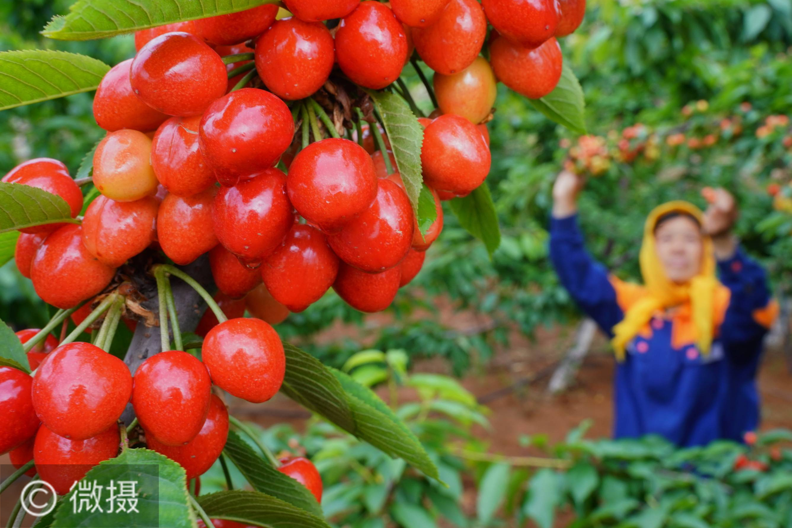 5月24日,滦州市九百户镇鸡冠山生态产业园的工人在采摘大樱桃。近日,河北省滦州市九百户镇的大樱桃进入成熟采摘期,果农抢抓农时采摘上市。近年来,该市发展林果种植业达10万亩,带动近1.2万农户增收。新华社记者 杨世尧 摄