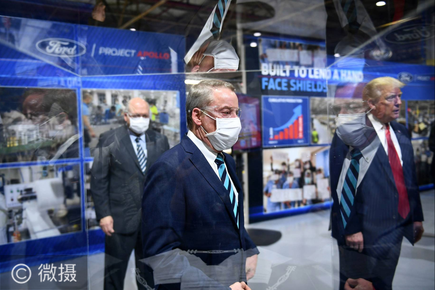 特朗普参观福特工厂手里拿着口罩
