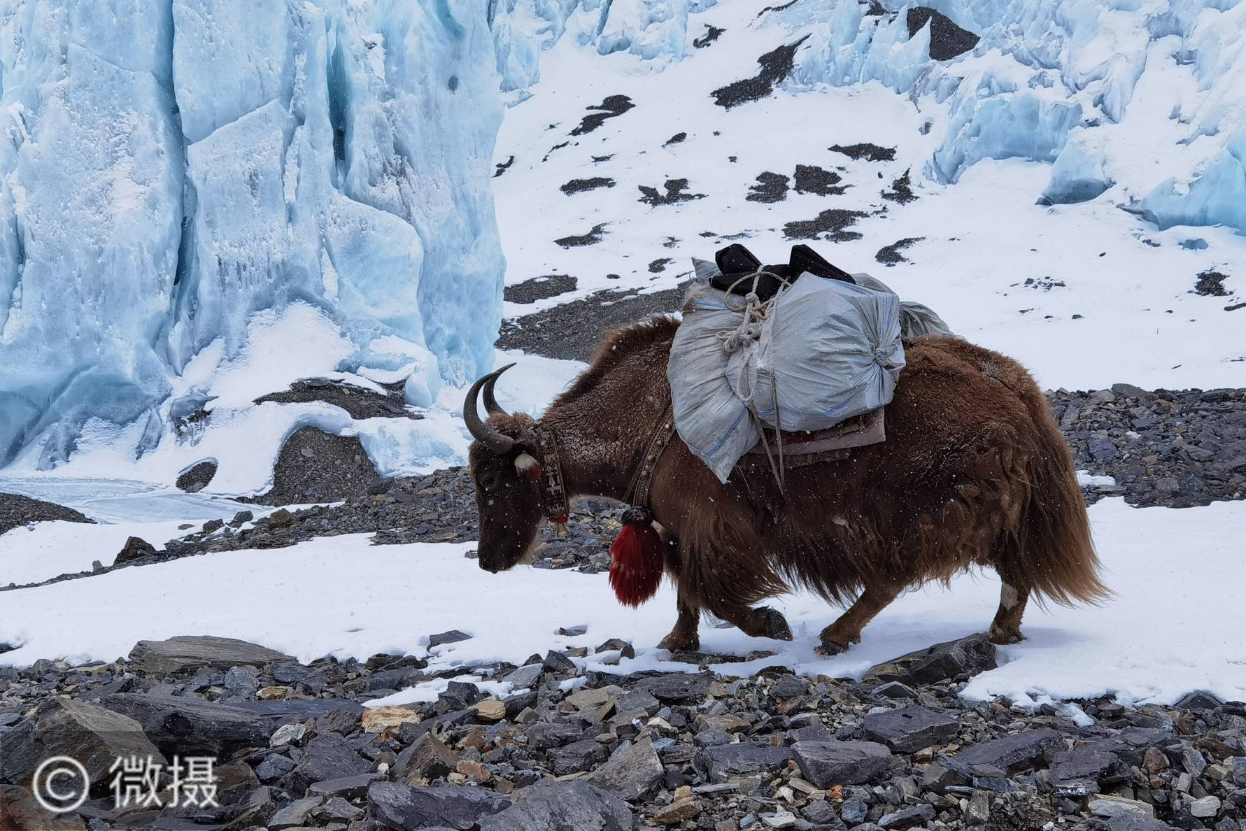 5月20日,牦牛向海拔6500米的珠峰前进营地运输物资。珠穆朗玛峰前进营地海拔约6500米,是北坡攀登珠峰路线上重要中间营地。从海拔5800米珠峰过渡营地出发,需徒步6至8个小时才能抵达。徒步过程中,经过东绒布冰川,冰塔林延绵数公里,景色十分壮美。新华社记者晋美多吉摄