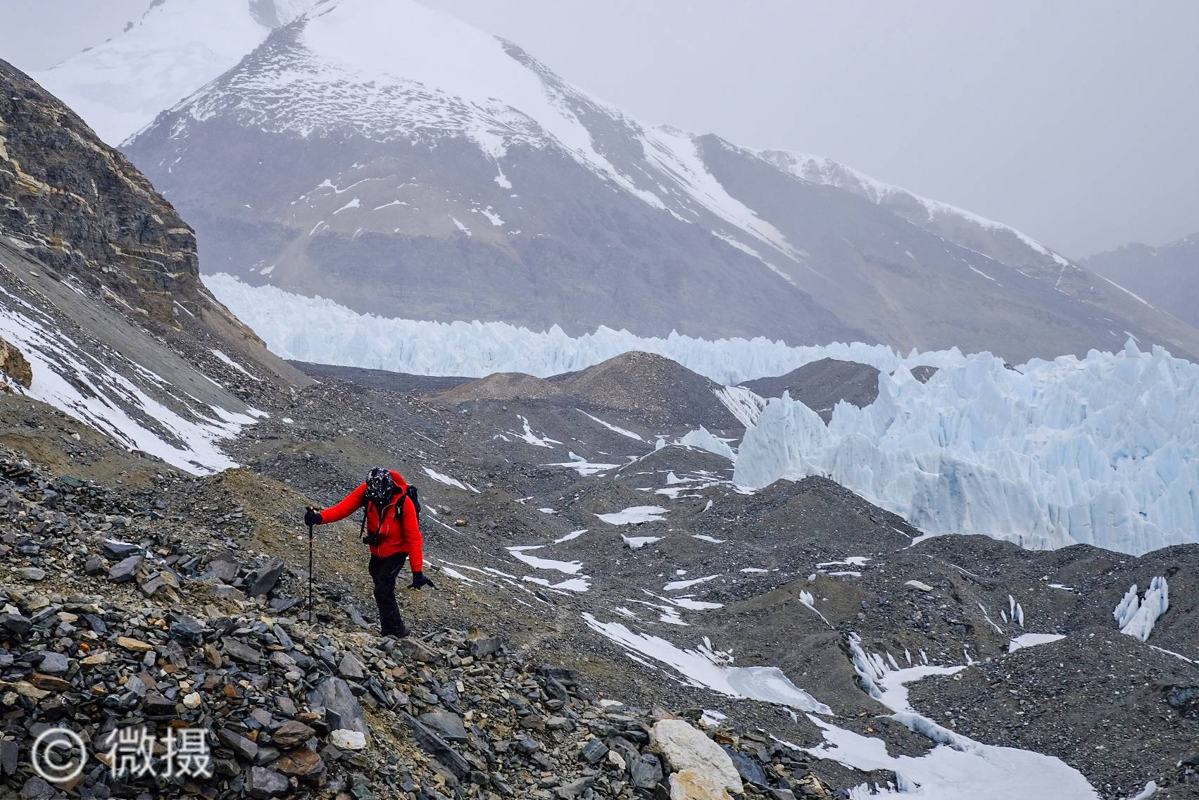 5月20日,新华社记者洛卓嘉措徒步前往海拔6500米的珠峰前进营地。珠穆朗玛峰前进营地海拔约6500米,是北坡攀登珠峰路线上重要中间营地。从海拔5800米珠峰过渡营地出发,需徒步6至8个小时才能抵达。徒步过程中,经过东绒布冰川,冰塔林延绵数公里,景色十分壮美。新华社记者晋美多吉摄