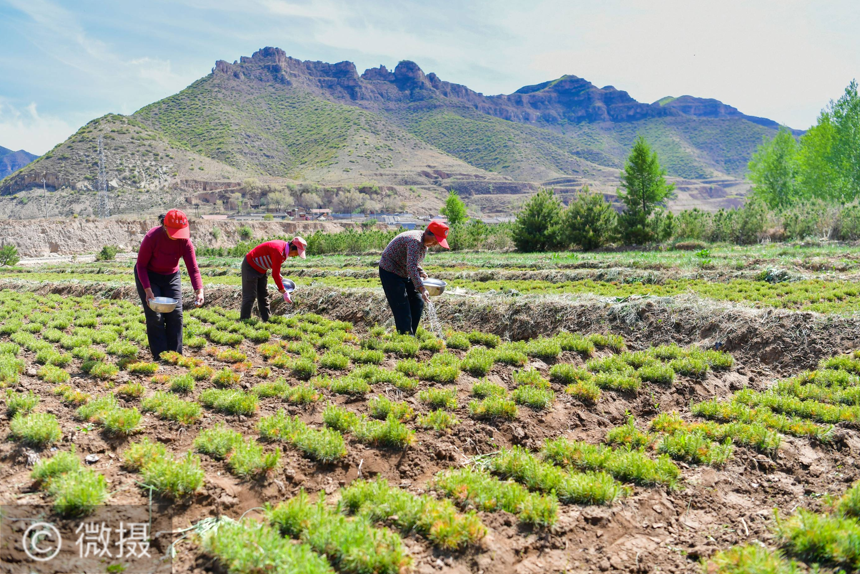 5月19日,宋家沟村村民在给树苗施肥。 “做梦都想不到我会住到风景区里面!”一谈起搬迁后的新生活,岢岚县宋家沟村村民刘林桃就乐得合不拢嘴。这里山大沟深,四分之三的土地是陡坡地。2018年宋家沟村成为3A级旅游景区,2019年入选首批全国乡村旅游重点村。新华社记者 曹阳 摄