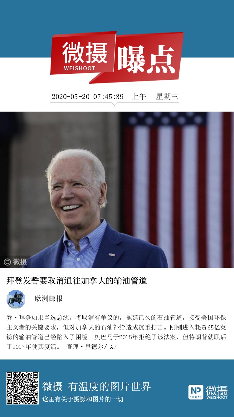 乔·拜登如果当选总统,将取消有争议的,拖延已久的石油管道,接受美国环保主义者的关键要求,但对加拿大的石油补给造成沉重打击。刚刚进入耗资65亿英镑的输油管道已经陷入了困境。奥巴马于2015年拒绝了该法案,但特朗普就职后于2017年使其复活。 查理·里德尔/ AP