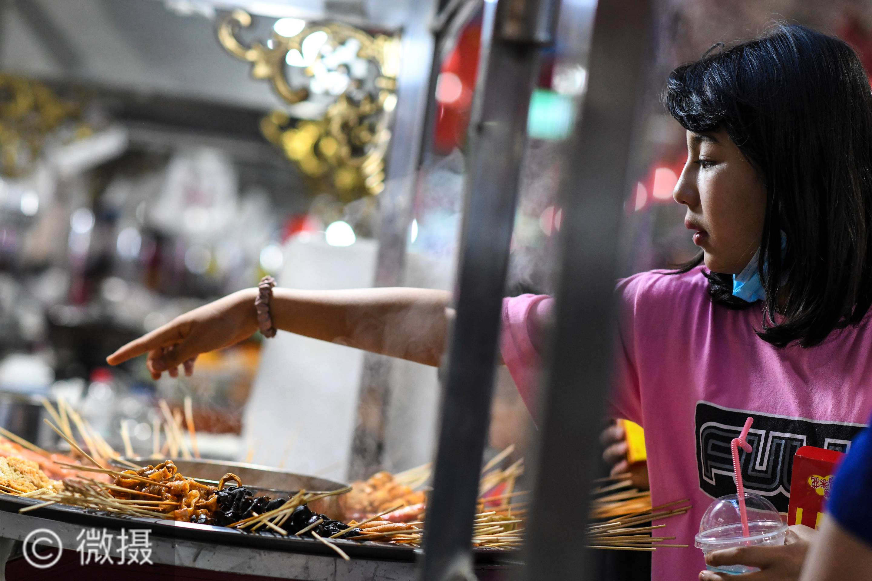 品美食、赏歌舞、和田夜市迎客来。游客在新疆和田夜市选购麻辣烫(5月18日摄)。5月中旬以来,新疆和田气候渐暖,当地旅游经济逐步复苏,笑迎八方游客。和田的夜市逐渐热闹起来,吸引不少游客前来打卡,品尝美食,欣赏歌舞。新华社记者 王菲 摄