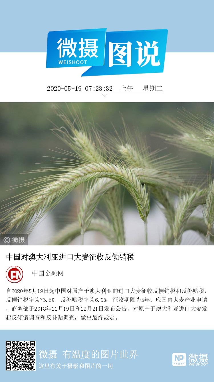 自2020年5月19日起中国对原产于澳大利亚的进口大麦征收反倾销税和反补贴税,反倾销税率为73.6%,反补贴税率为6.9%,征收期限为5年。应国内大麦产业申请,商务部于2018年11月19日和12月21日发布公告,对原产于澳大利亚进口大麦发起反倾销调查和反补贴调查,做出最终裁定。