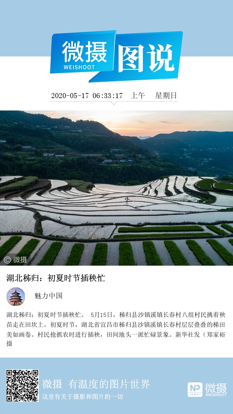 湖北秭归:初夏时节插秧忙。 5月15日,秭归县沙镇溪镇长春村八组村民挑着秧苗走在田坎上。初夏时节,湖北省宜昌市秭归县沙镇溪镇长春村层层叠叠的梯田美如画卷。村民抢抓农时进行插秧,田间地头一派忙碌景象。新华社发(郑家裕 摄