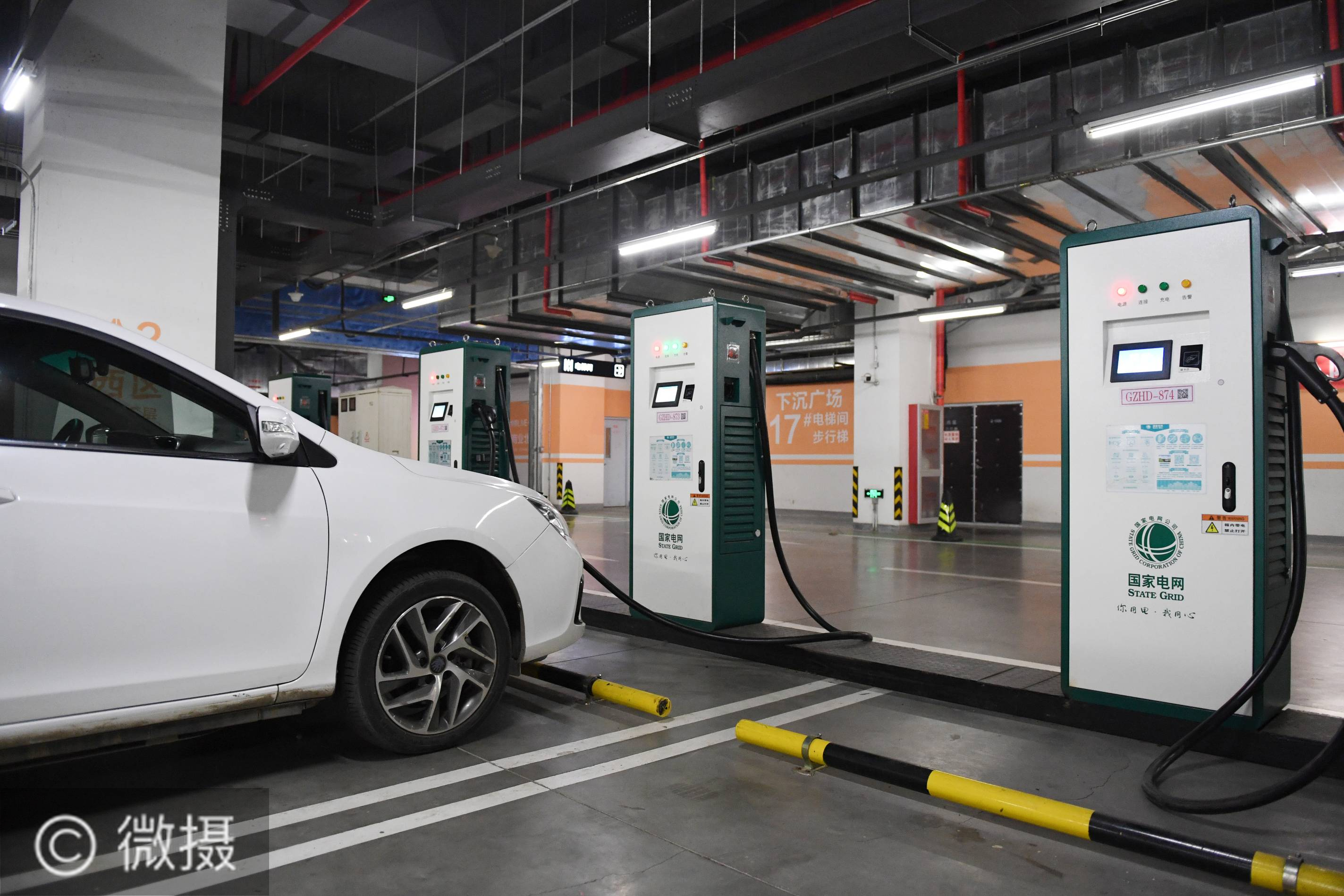 北京规模最大的集中式电动汽车充电站已于5月15日在五棵松体育中心地下停车场投入使用。该充电站共有200个充电桩,包括80个60千瓦直流充电桩和120个7千瓦交流充电桩,单日可最大提供约1300车次充电服务能力。新华社记者 鞠焕宗 摄
