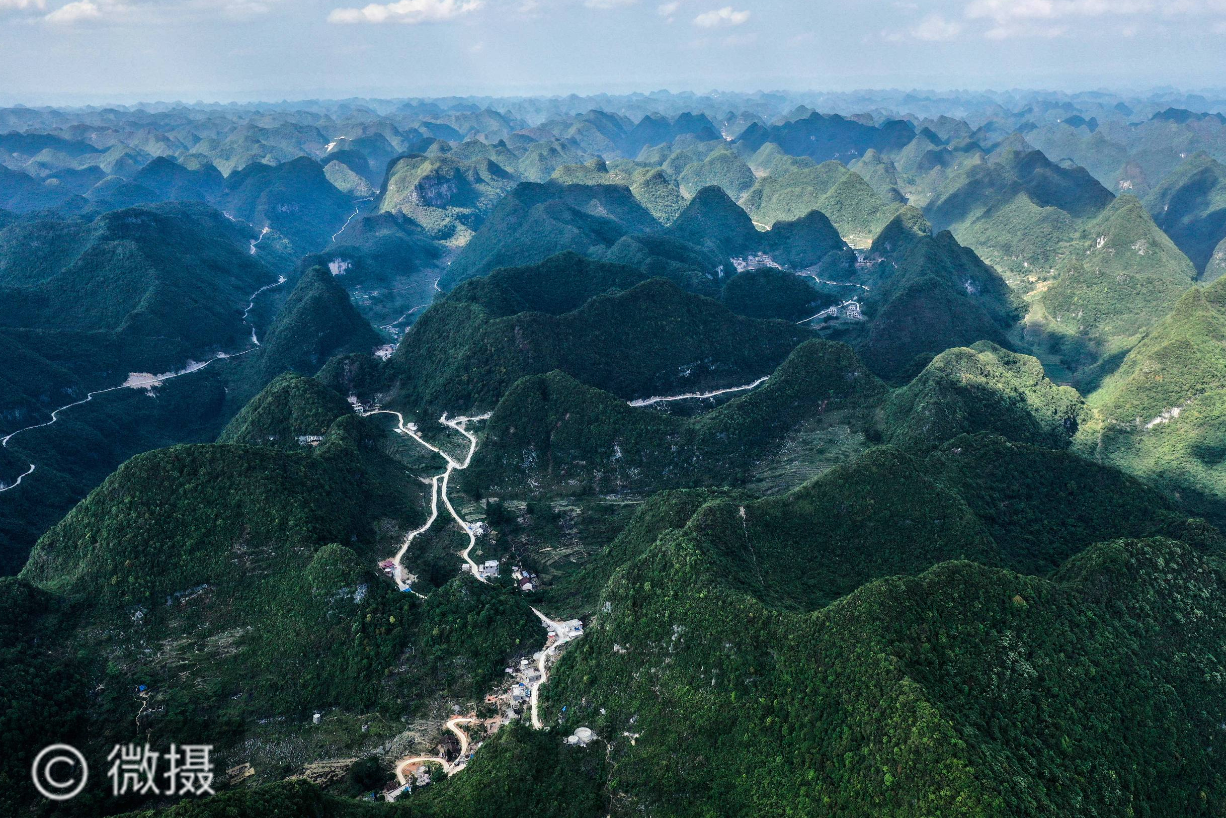 这是广西大化七百弄国家地质公园(5月14日摄,无人机照片)。广西大化七百弄国家地质公园位于大化瑶族自治县西北部,是发育较为典型的高峰丛深洼地地区。在地质公园范围内,有海拔800米至1000米的山峰5000多座,千姿百态的深洼地1300多个。新华社记者 张爱林 摄