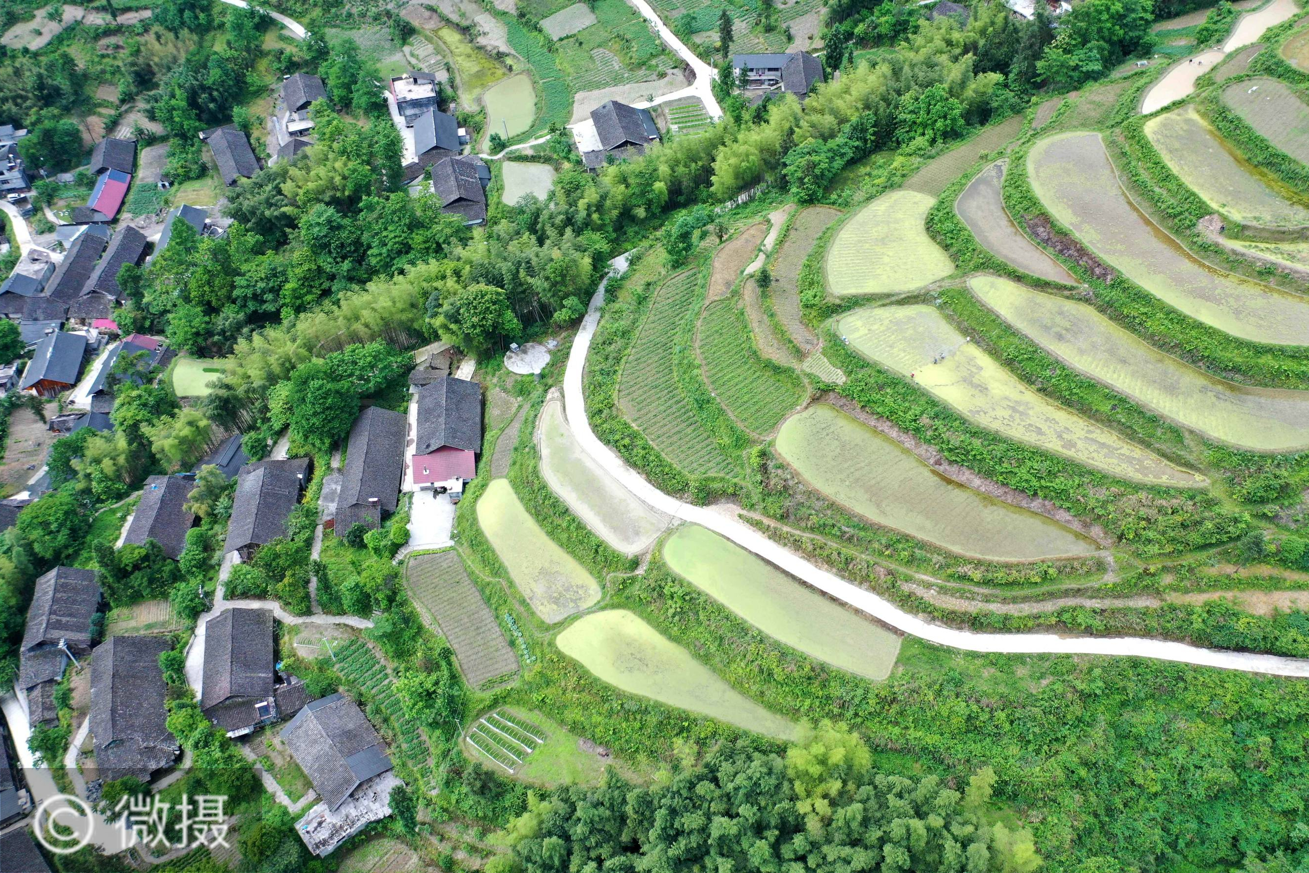 这是5月15日拍摄的湖北省宣恩县高罗镇大茅坡营村蓄水的梯田和民居(无人机照片)。时下,湖北省恩施土家族苗族自治州宣恩县高罗镇大茅坡营村千亩梯田进入插秧季,蓄水的梯田、劳作的农民与传统民居构成了一幅美丽的农耕画卷。新华社发(宋文 摄)