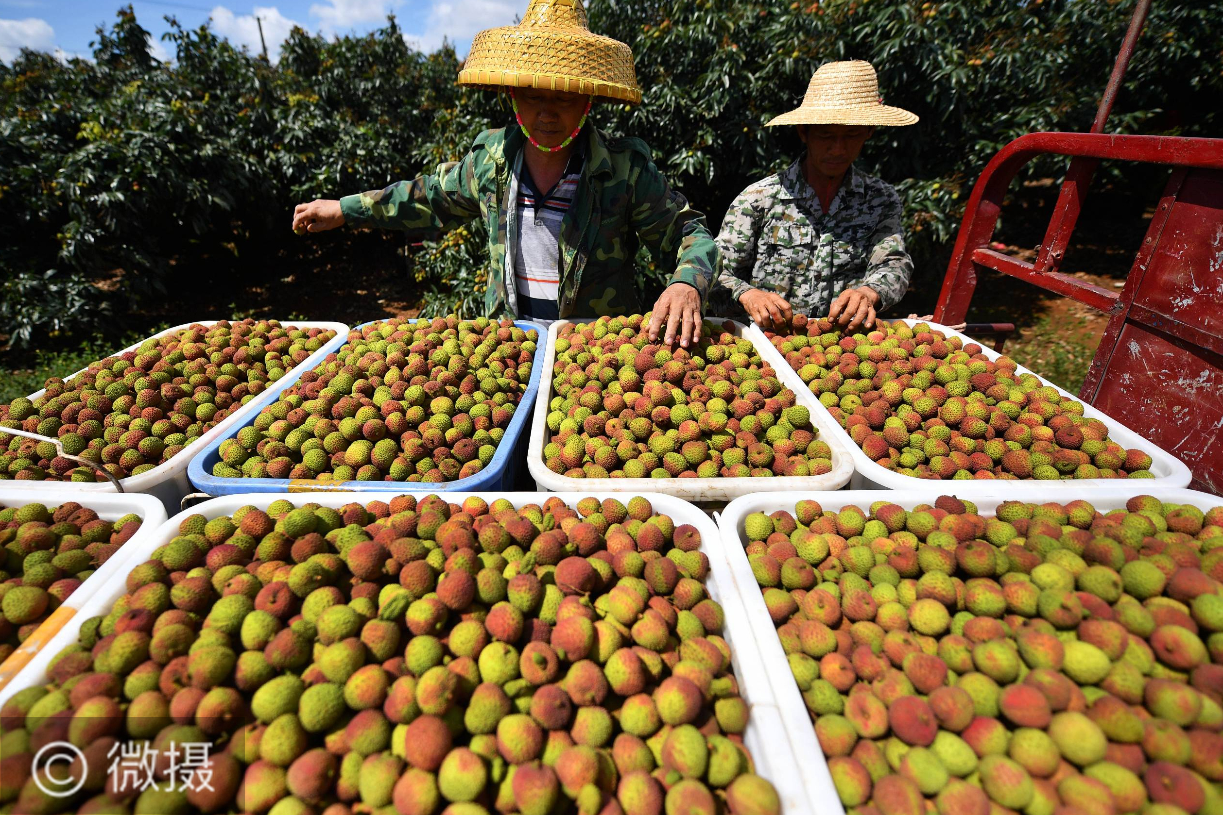 5月14日,海口市琼山区三门坡镇的农民把刚采摘的荔枝装车,准备运往收购点。近日,海南北部地区的“妃子笑”荔枝进入收获时节。据了解,今年海南荔枝种植面积近40万亩,产量和同期收购价都较去年有所提高。新华社记者郭程摄