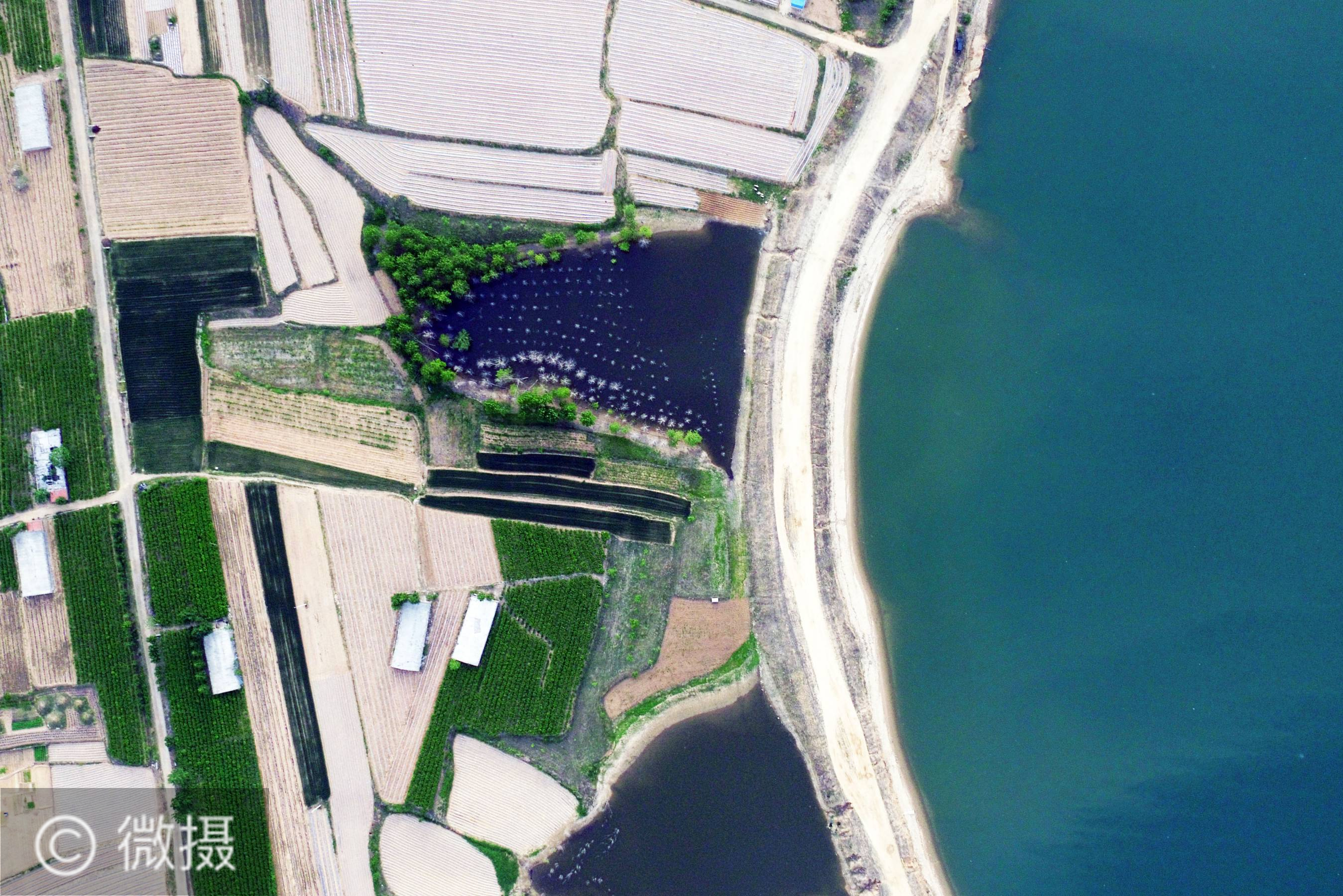 俯瞰青峰岭 生态绿之洲。5月13日拍摄的青峰岭水库库区景色(无人机照片)。青峰岭水库位于山东省日照市莒县,是山东第四大水库。库区沿岸乡镇发展林果经济,实现了生态与发展协调统一。新华社记者 王凯 摄