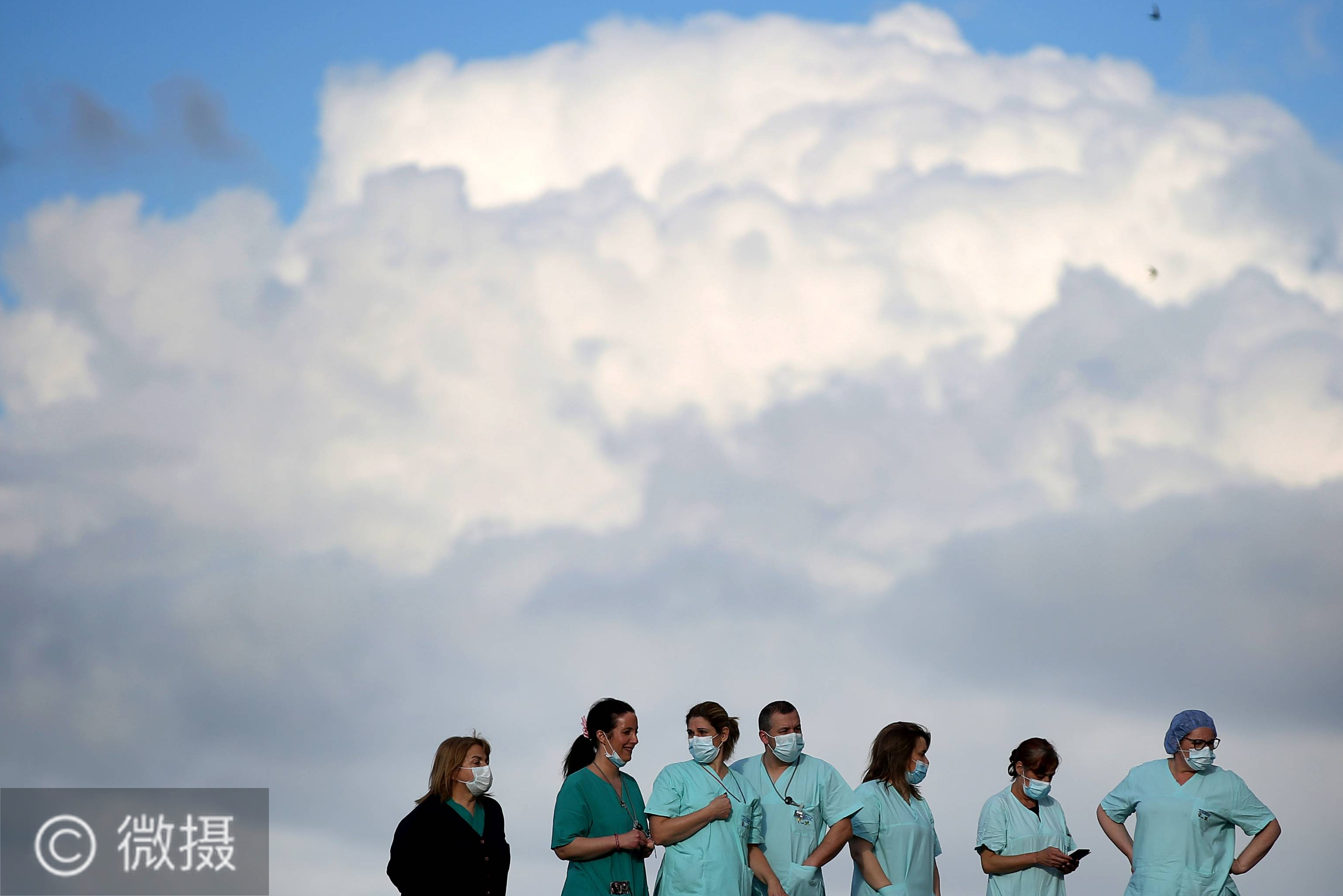 5月12日,葡萄牙首都里斯本的圣玛利亚医院的医护人员聆听“法朵”音乐表演团队“月光小夜曲”成员表演的“法朵”乐曲。当天是国际护士节,乐队成员专程到医院,送上葡萄牙最具民族特色的音乐——“法朵”乐曲表演,表达对医护人员的敬意。新华社发(佩德罗·菲乌萨摄)