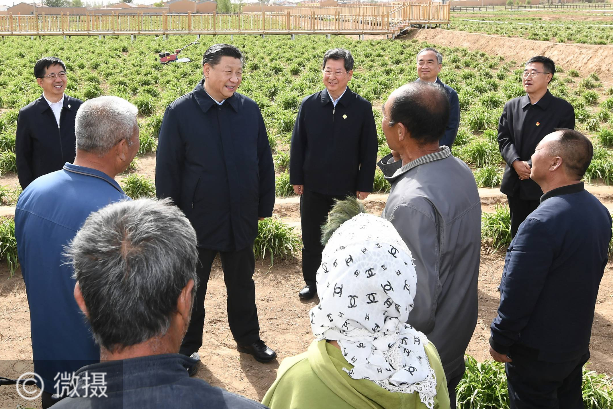 习近平在山西考察。 5月11日至12日,中共中央总书记、国家主席、中央军委主席习近平在山西考察。这是5月11日下午,习近平在大同市云州区有机黄花标准化种植基地,同正在劳作的村民们亲切交谈。新华社记者 谢环驰 摄