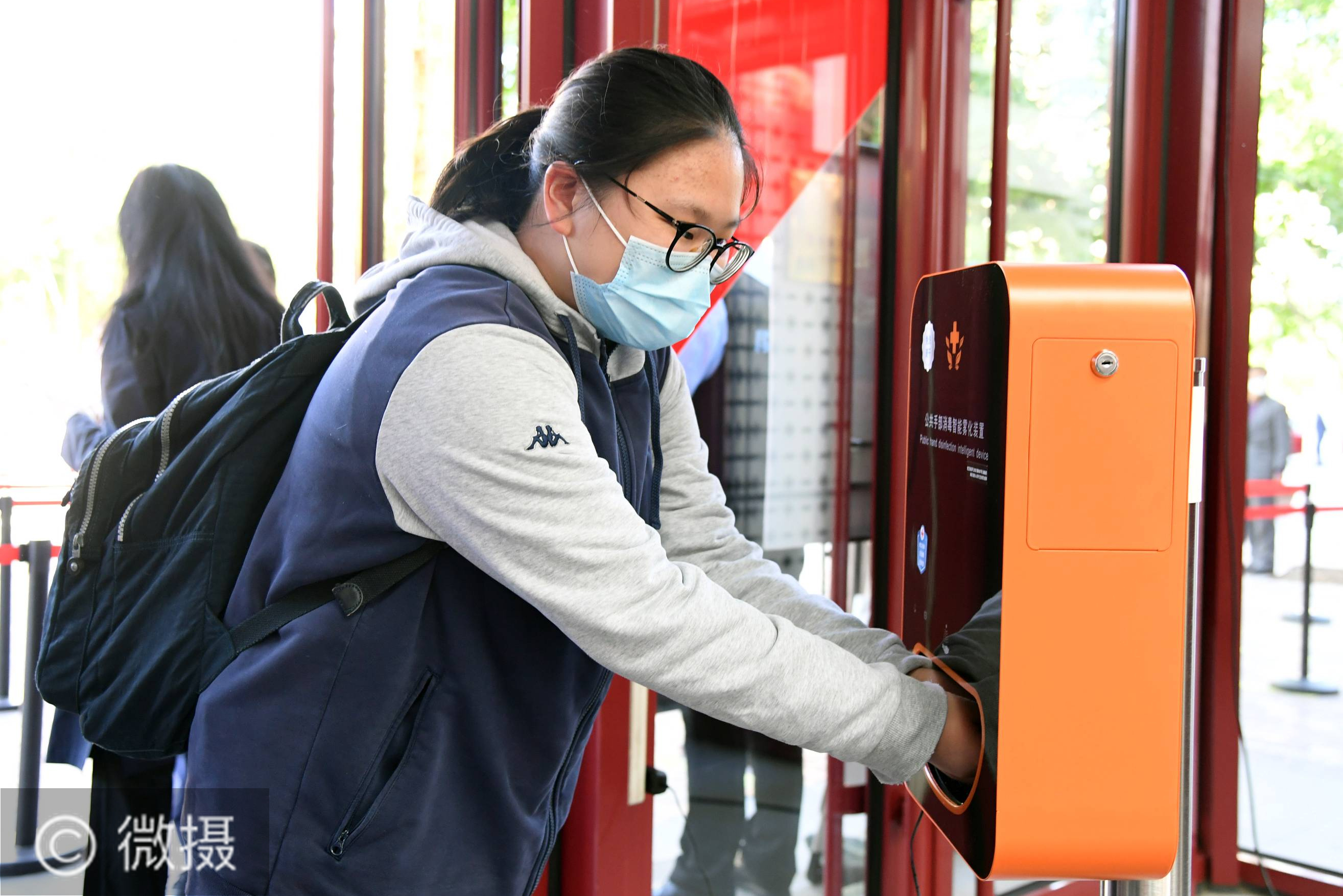 新华社照片,北京,2020年5月11日。北京初三年级开学复课。5月11日,在位于北京市海淀区的北京市十一学校龙樾实验中学,初三年级学生进行手部雾化消毒。当日,北京市初三年级学生开学复课。新华社记者 任超 摄