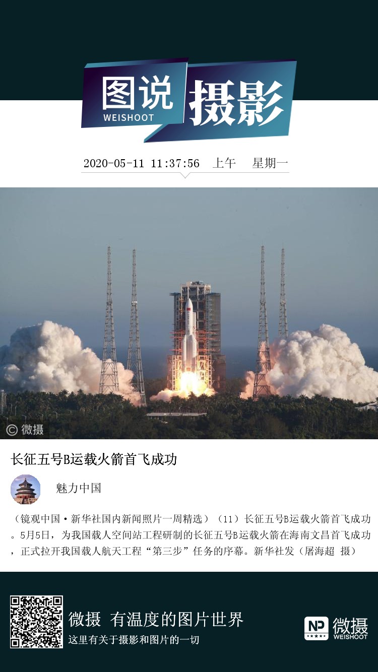 (镜观中国·新华社国内新闻照片一周精选)(11)长征五号B运载火箭首飞成功。5月5日,为我国载人空间站工程研制的长征五号B运载火箭在海南文昌首飞成功,正式拉开我国载人航天工程“第三步”任务的序幕。新华社发(屠海超 摄)