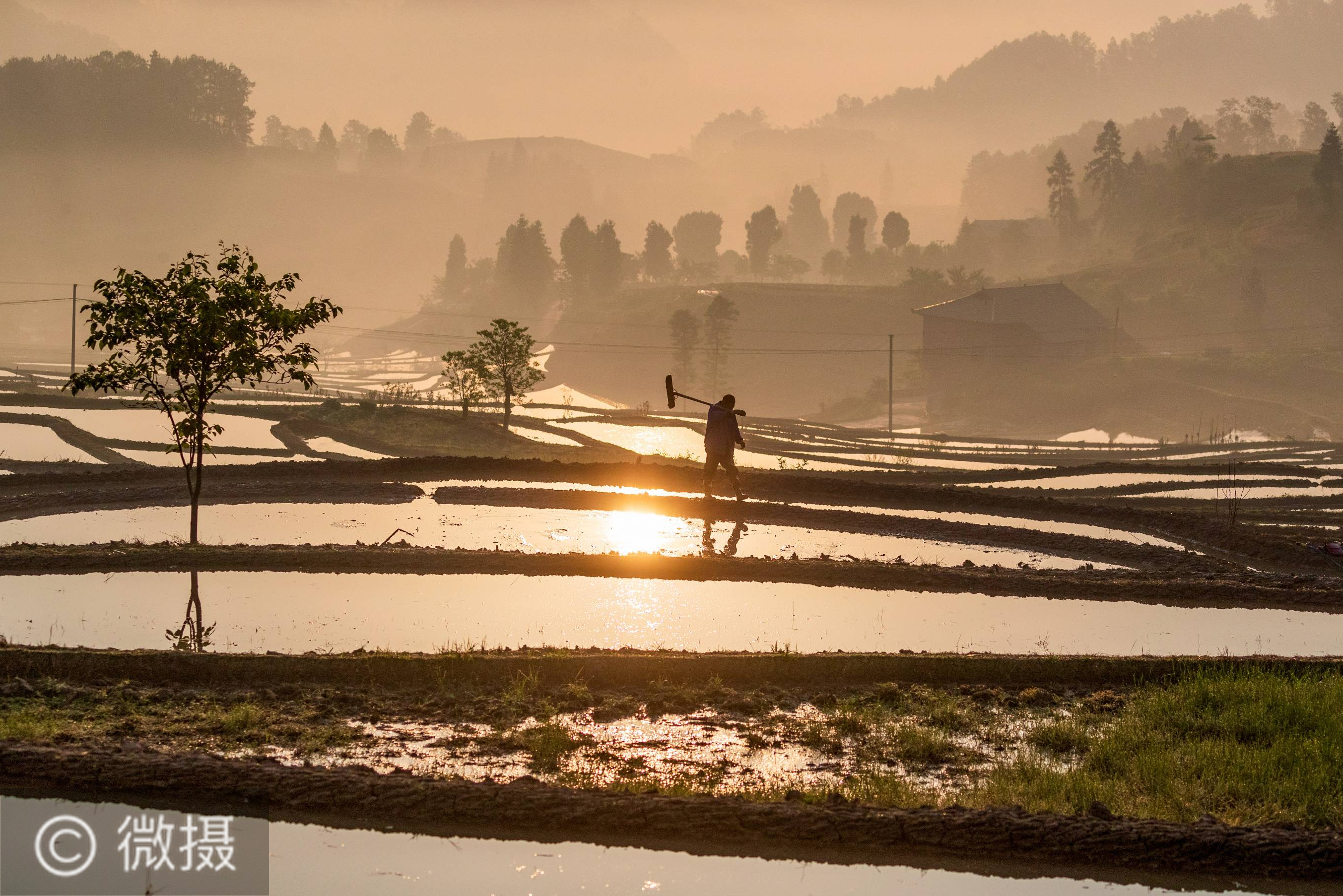 新华社照片,北京,2020年5月10日。(镜观中国·新华社国内新闻照片一周精选)(9)农人晨曲5月2日,重庆市南川区石溪镇盐井村村民迎着朝阳行走在田间。新华社发(瞿明斌 摄)