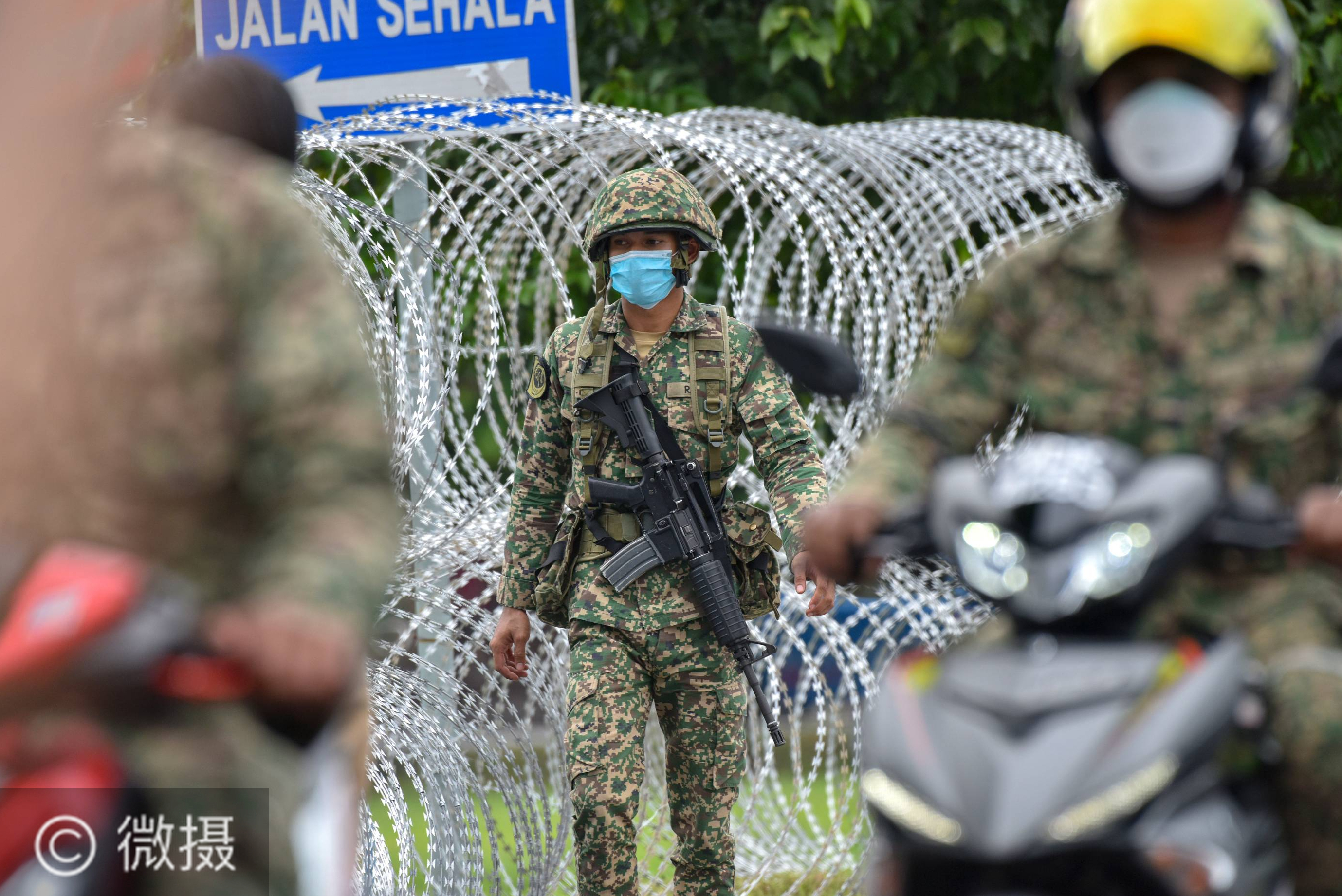 马来西亚延长行动管制措施至6月。5月10日,士兵在马来西亚雪兰莪州一处因新冠疫情而封锁的小区外执勤。马来西亚总理穆希丁10日宣布,为防控新冠疫情蔓延,政府决定将行动管制措施延长至6月9日。新华社发(张纹综摄)
