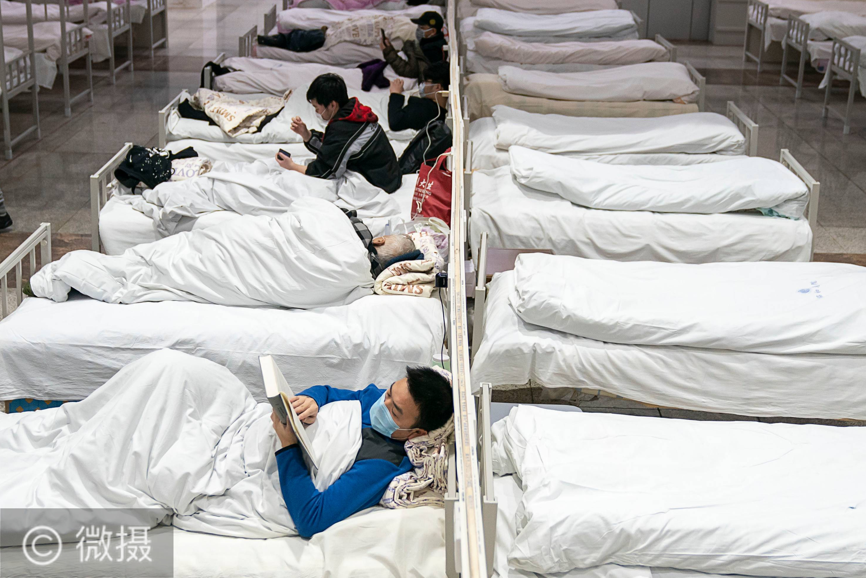 钟华论:在民族复兴的历史丰碑上——2020中国抗疫记。大江流日夜,慷慨歌未央。2020年的中国抗疫,在中华民族史册、人类发展史册上写下悲壮雄浑的篇章。2月5日,患者在武汉江汉方舱医院内。新华社记者 熊琦 摄