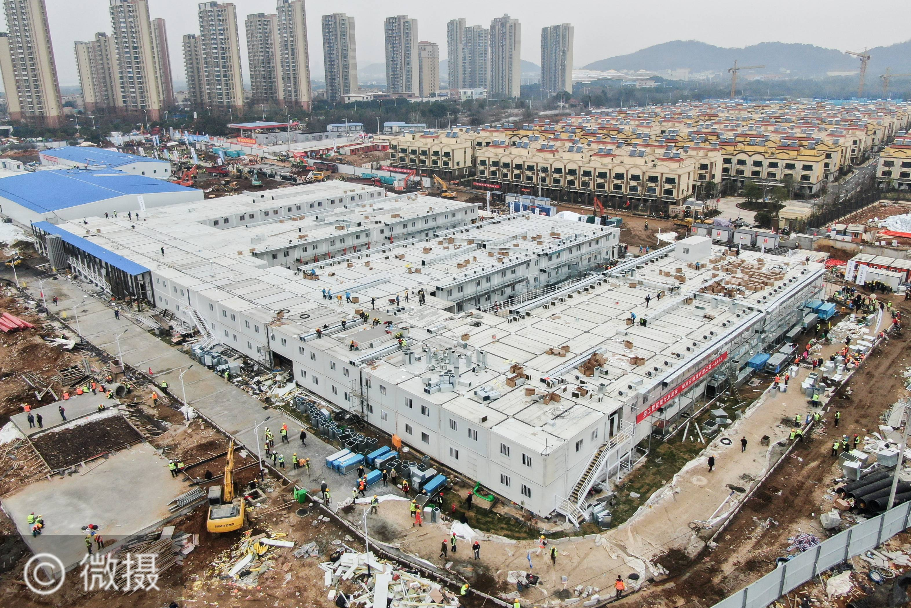 钟华论:在民族复兴的历史丰碑上——2020中国抗疫记。大江流日夜,慷慨歌未央。2020年的中国抗疫,在中华民族史册、人类发展史册上写下悲壮雄浑的篇章。这是2月2日拍摄的武汉火神山医院(无人机照片)。新华社记者 程敏 摄
