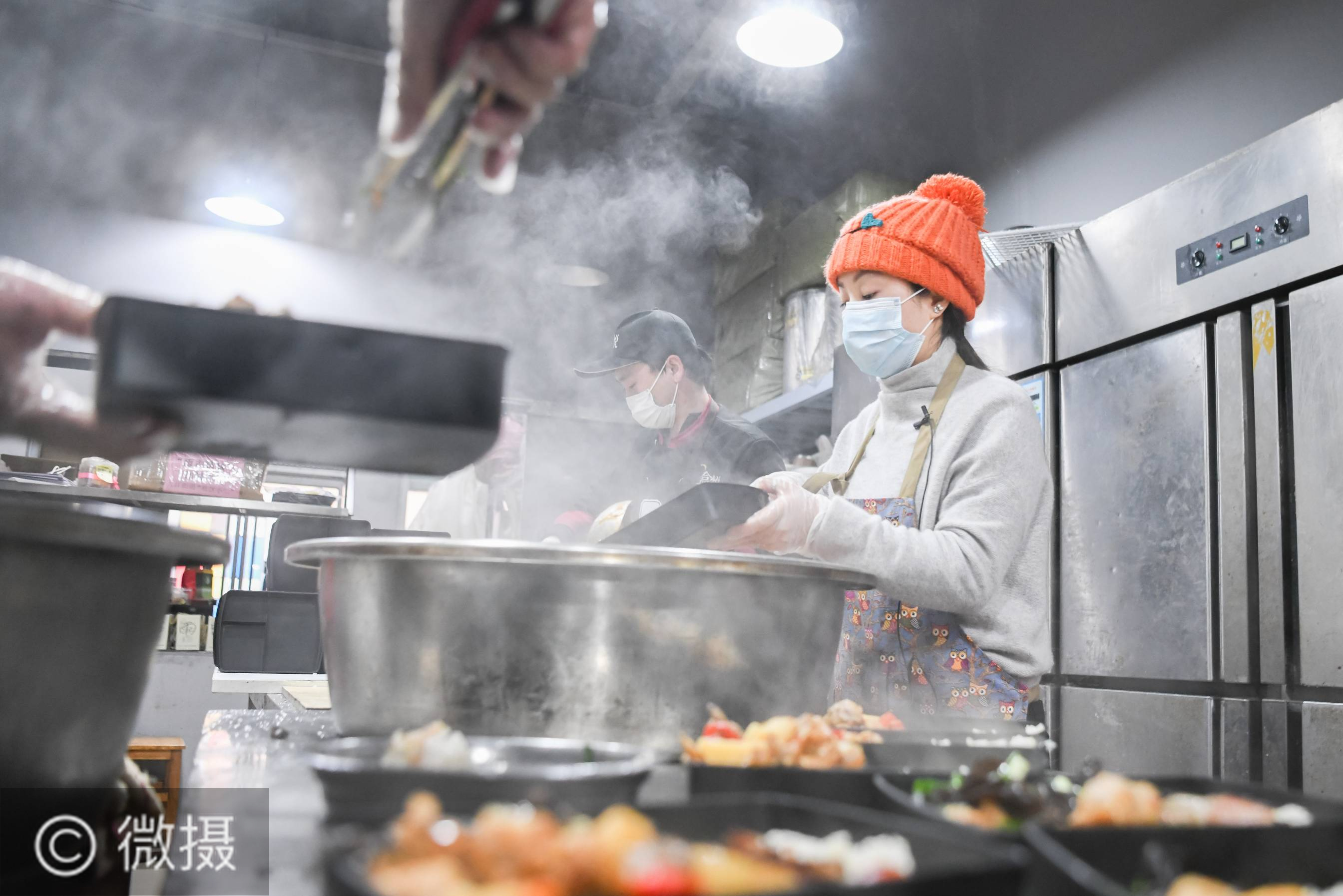 钟华论:在民族复兴的历史丰碑上——2020中国抗疫记。大江流日夜,慷慨歌未央。2020年的中国抗疫,在中华民族史册、人类发展史册上写下悲壮雄浑的篇章。2月26日,爱心人士“雨衣妹妹”(右)在分装盒饭。新华社记者 程敏 摄