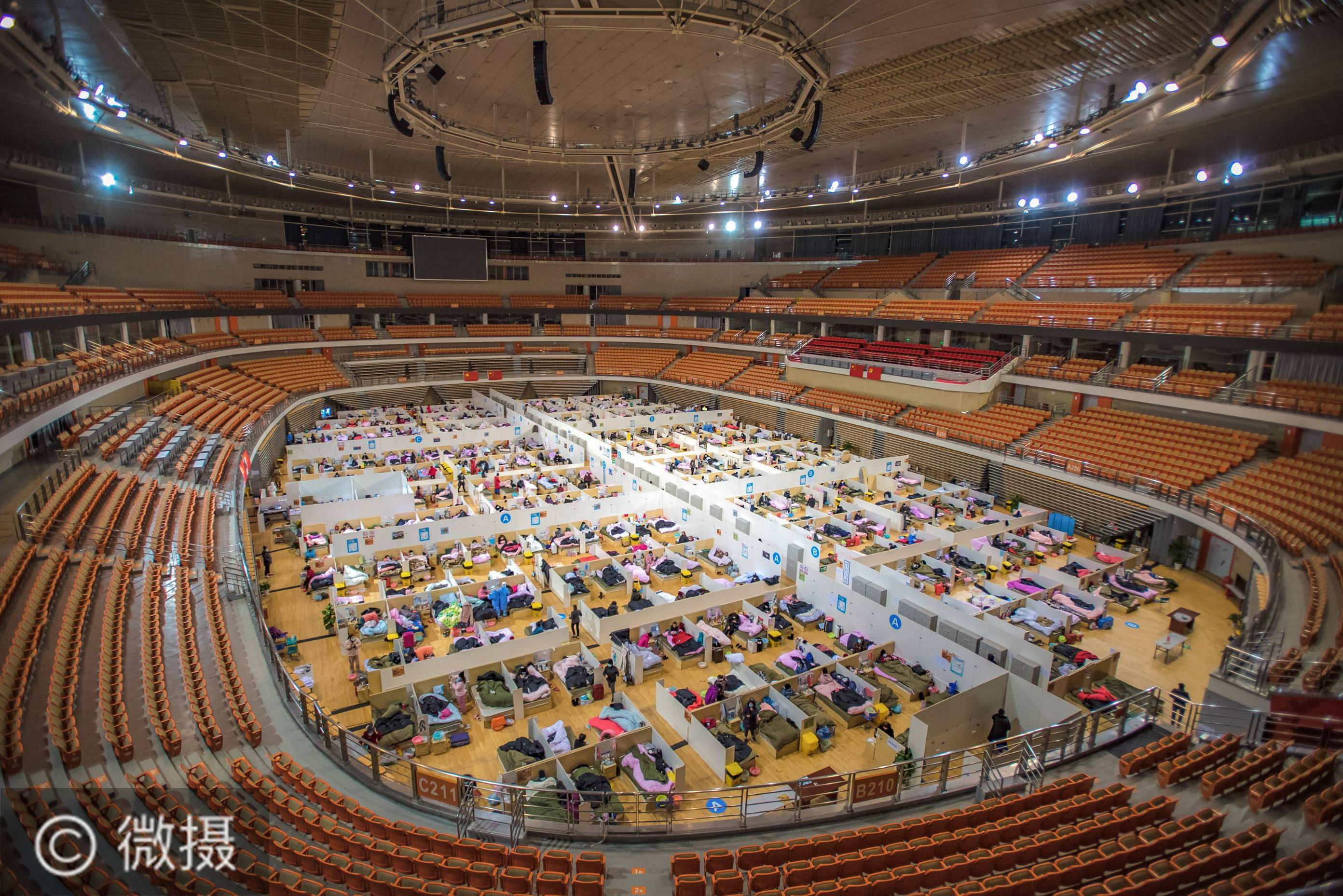钟华论:在民族复兴的历史丰碑上——2020中国抗疫记。大江流日夜,慷慨歌未央。2020年的中国抗疫,在中华民族史册、人类发展史册上写下悲壮雄浑的篇章。2月17日拍摄的武汉体育中心方舱医院。新华社记者 肖艺九 摄