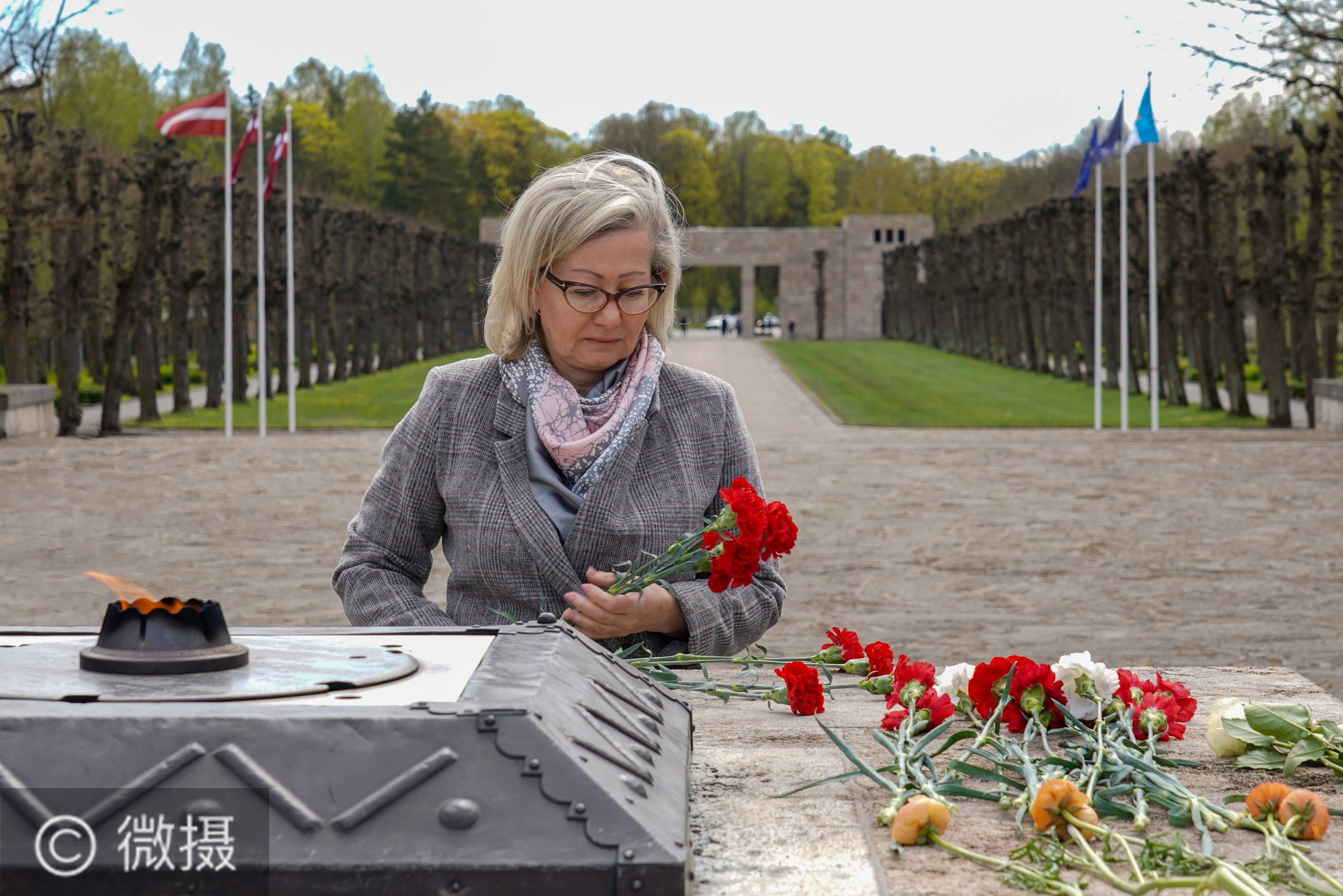 5月8日,一名女士在拉脱维亚首都里加的阵亡将士公墓敬献鲜花。当日是第二次世界大战“欧洲胜利日”,拉脱维亚在位于里加的阵亡将士公墓举行献花仪式,纪念第二次世界大战欧洲战场胜利75周年并悼念二战牺牲者。新华社发(亚尼斯摄)