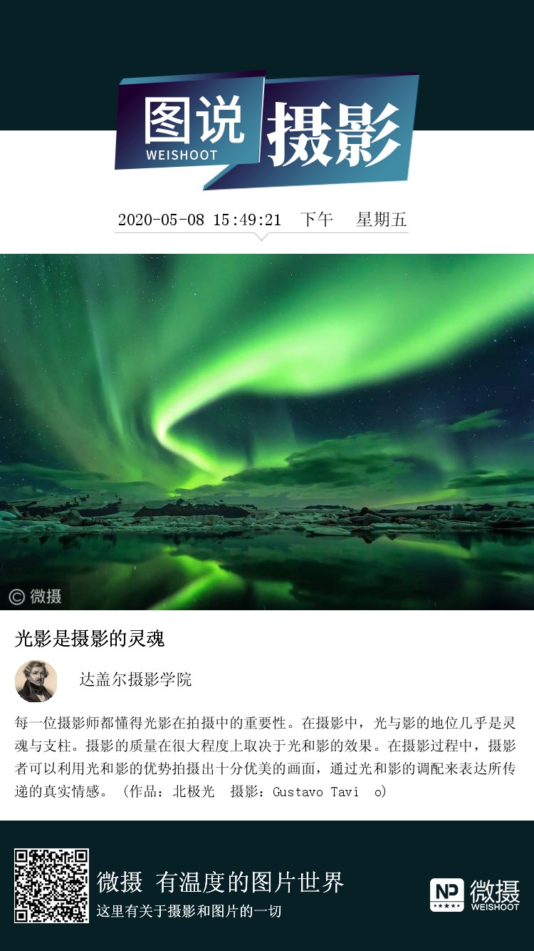 每一位摄影师都懂得光影在拍摄中的重要性。在摄影中,光与影的地位几乎是灵魂与支柱。摄影的质量在很大程度上取决于光和影的效果。在摄影过程中,摄影者可以利用光和影的优势拍摄出十分优美的画面,通过光和影的调配来表达所传递的真实情感。 (作品:北极光 摄影:Gustavo Tavío)