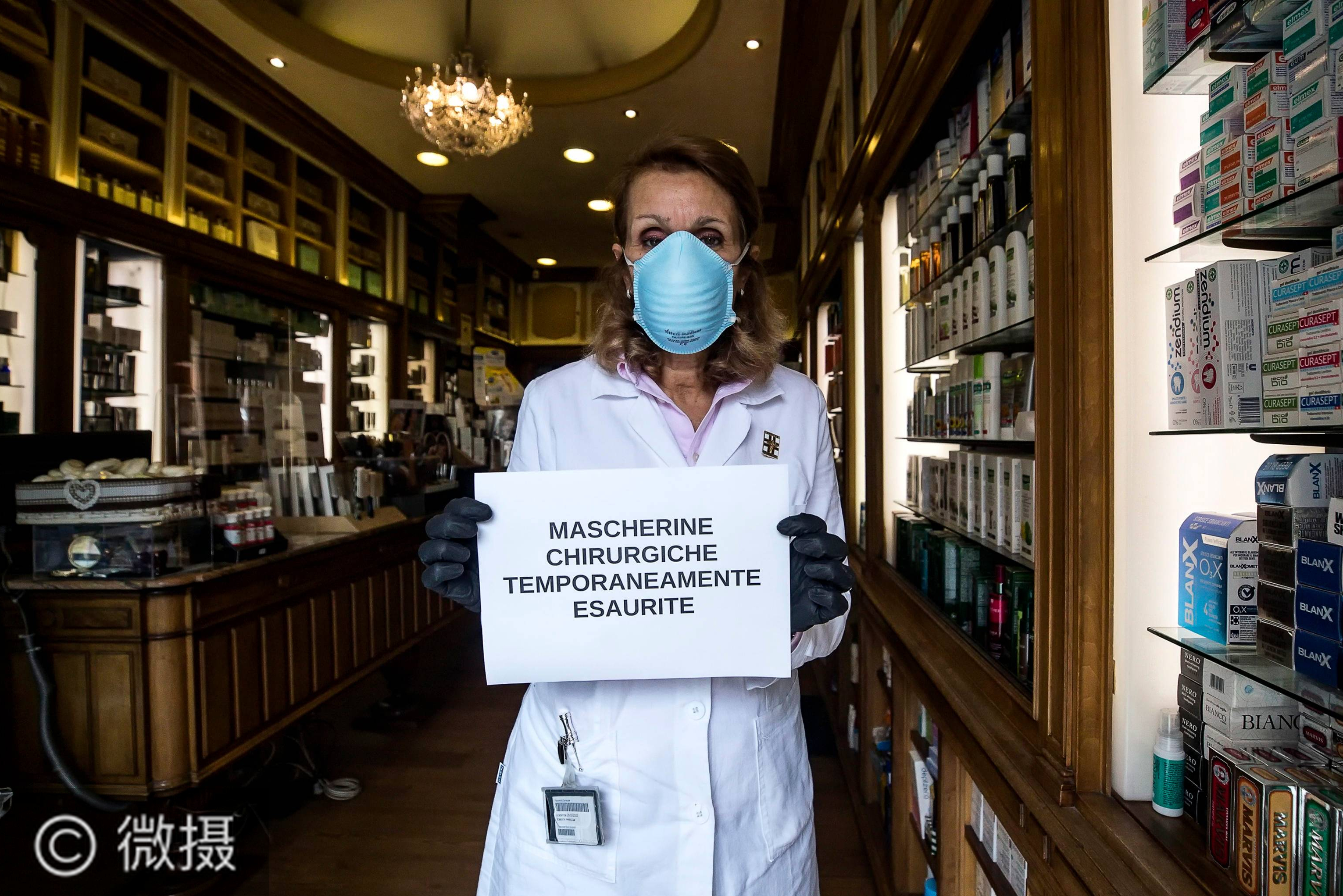 5月5日,在意大利首都罗马,一名药剂师展示写着“外科口罩已售完”的纸条。从5月4日起,意大利进入抗疫和恢复经济并行的第二阶段。经历欧洲最漫长“封城”后,意大利开始解封。人们忽然发现,喧闹的意大利仿佛又回来了。新华社/欧新