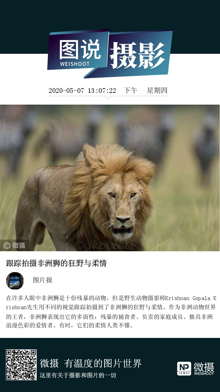 在许多人眼中非洲狮是十份残暴的动物。但是野生动物摄影师Krishnan Gopala Krishnan先生用不同的视觉跟踪拍摄到了非洲狮的狂野与柔情。作为非洲动物世界的王者,非洲狮表现出它的多面性:残暴的捕食者、负责的家庭成员、独具非洲浪漫色彩的爱情者。有时,它们的柔情人类不懂。