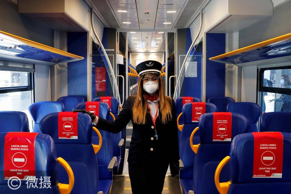 一名火车售票员站在座位旁,指挥着罗马的乘客。罗马市中心的SE咖啡厅在近两个月内首次开启,当地人认为该咖啡厅可以提供该市最好的咖啡。万神殿旁边的咖啡馆被允许重新开放供外卖,因为意大利放宽了自3月10日实施的严格封锁规则,数百万意大利人留在家中。REMO CASILLI /路透社