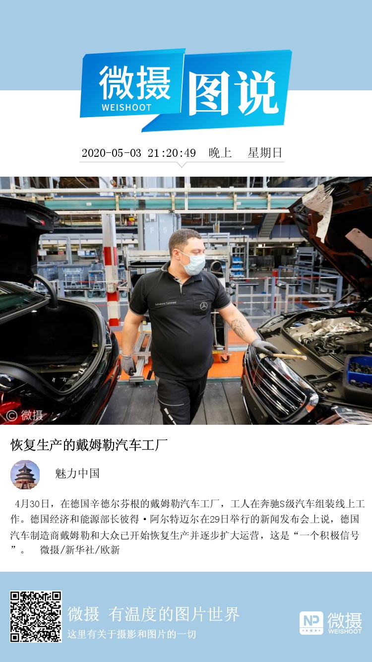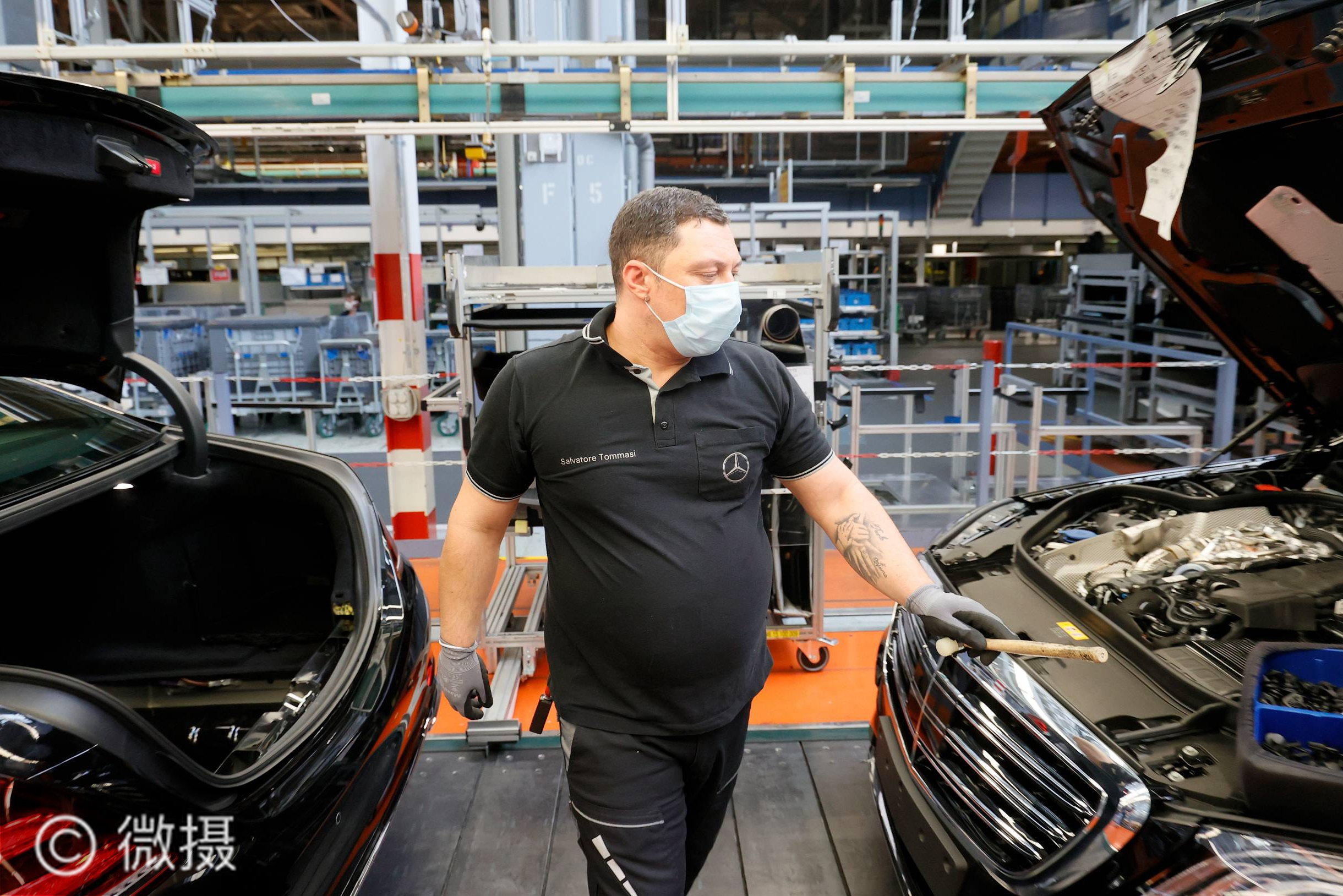 4月30日,在德国辛德尔芬根的戴姆勒汽车工厂,工人在奔驰S级汽车组装线上工作。德国经济和能源部长彼得·阿尔特迈尔在29日举行的新闻发布会上说,德国汽车制造商戴姆勒和大众已开始恢复生产并逐步扩大运营,这是“一个积极信号”。 微摄/新华社/欧新