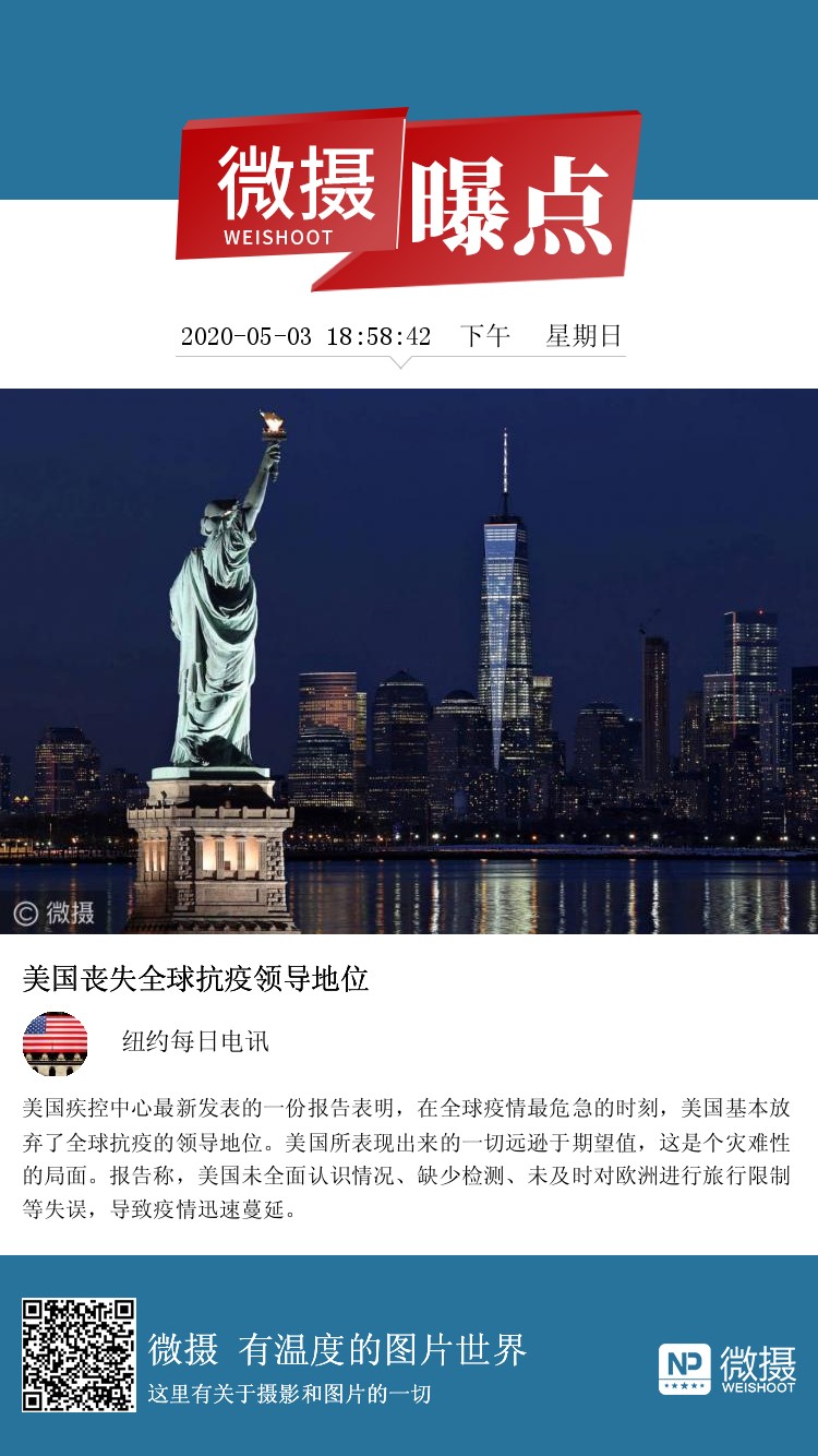美国疾控中心最新发表的一份报告表明,在全球疫情最危急的时刻,美国基本放弃了全球抗疫的领导地位。美国所表现出来的一切远逊于期望值,这是个灾难性的局面。报告称,美国未全面认识情况、缺少检测、未及时对欧洲进行旅行限制等失误,导致疫情迅速蔓延。