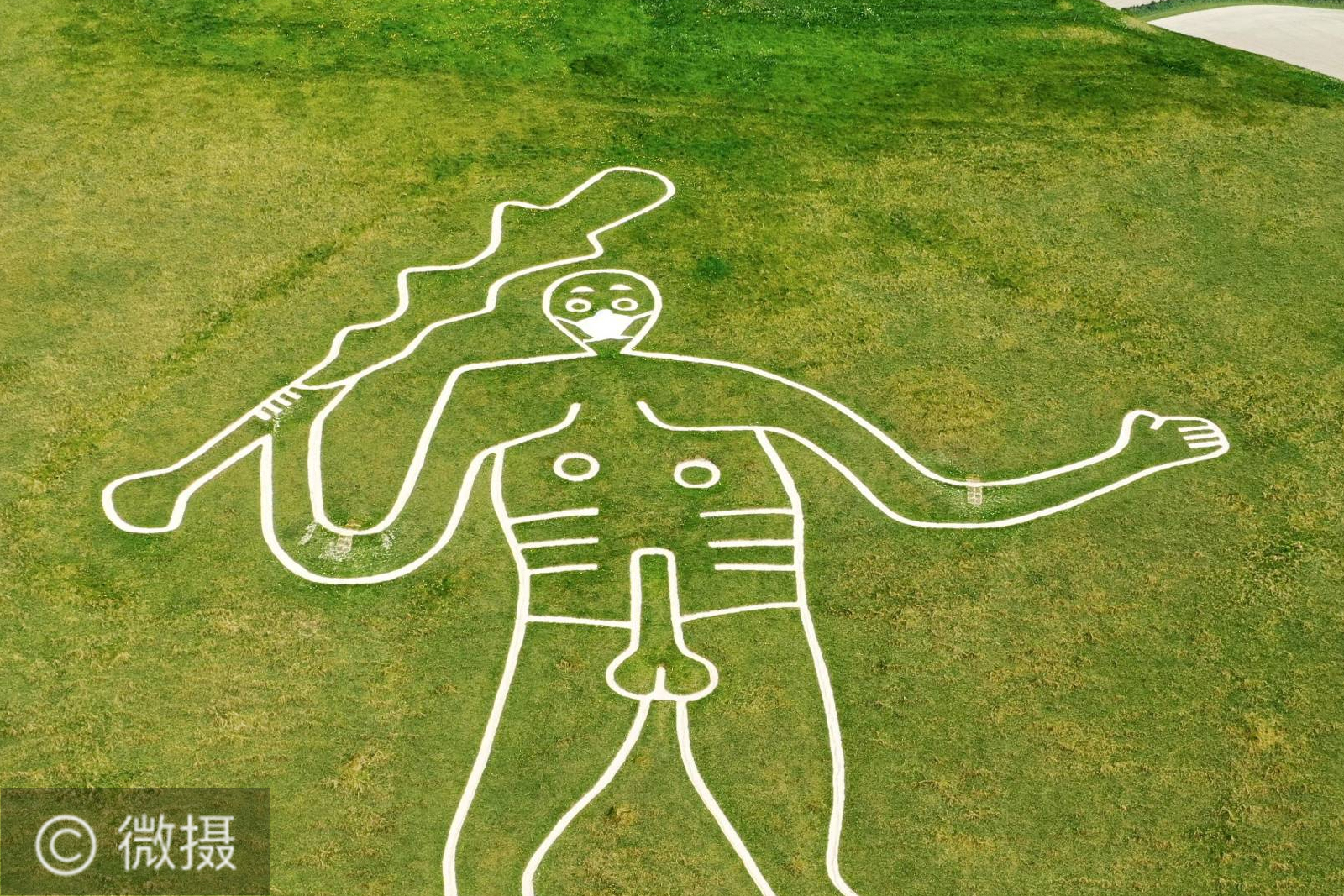 从维多利亚女王时代开始,英国英格兰南部多塞特郡的塞那·阿巴斯巨人像(CerneAbbas Giant)就被视为不孕妇女的救星。上周星期五,阿巴斯巨人裸粉笔雕像未经授权被戴上了冠状病毒面罩。塞恩·阿巴斯巨人通常不向公众开放,以避免造成破坏和侵蚀。