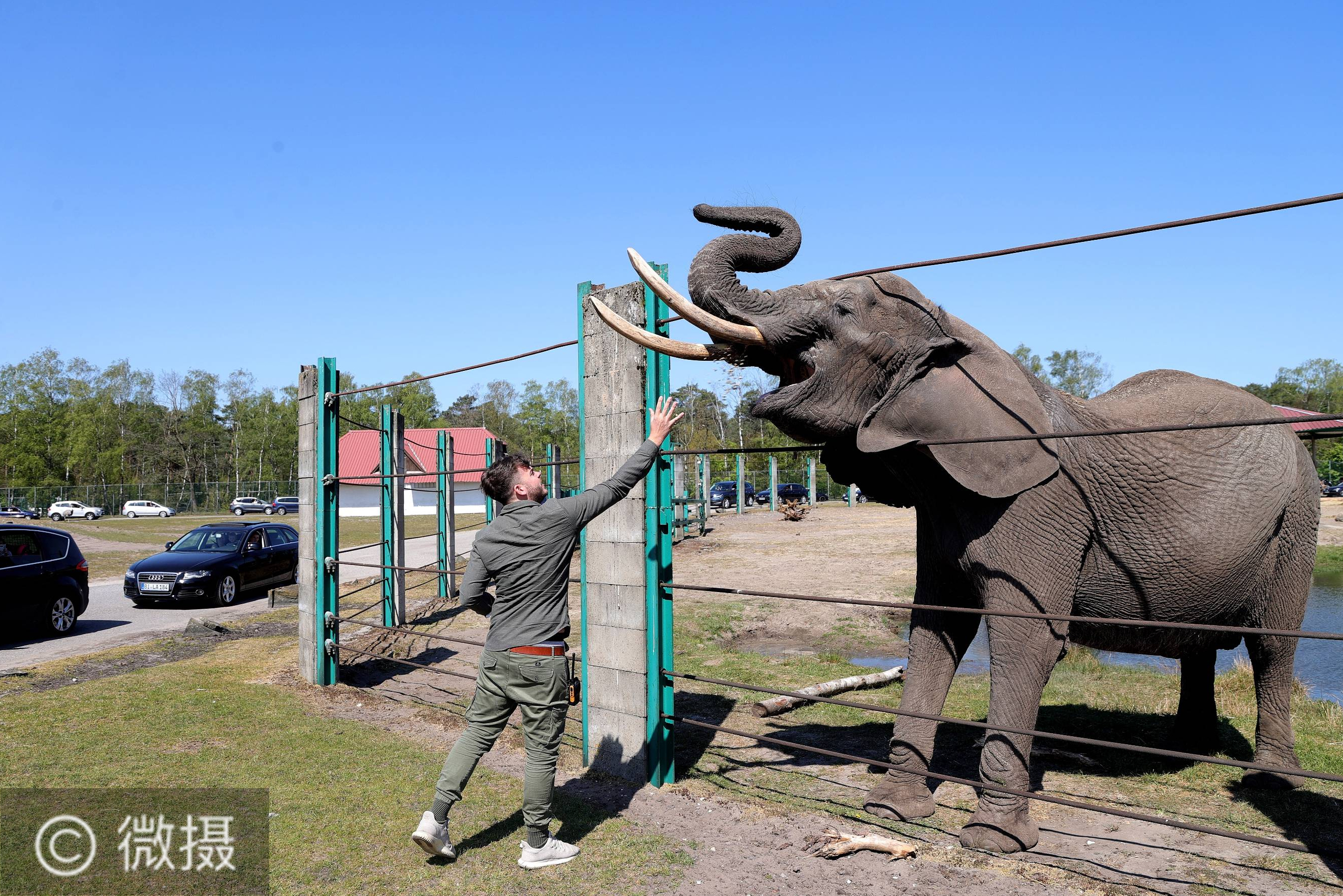 重新开放的德国野生动物园。这是4月21日在德国施洛斯霍尔特-施图肯布罗克的施图肯布罗克野生动物园拍摄的大象。施图肯布罗克野生动物园是德国在新冠疫情中首批重新开门迎客的动物园之一。该动物园从4月17日开始重新开门,允许游客开车游览。微摄/新华社/欧新