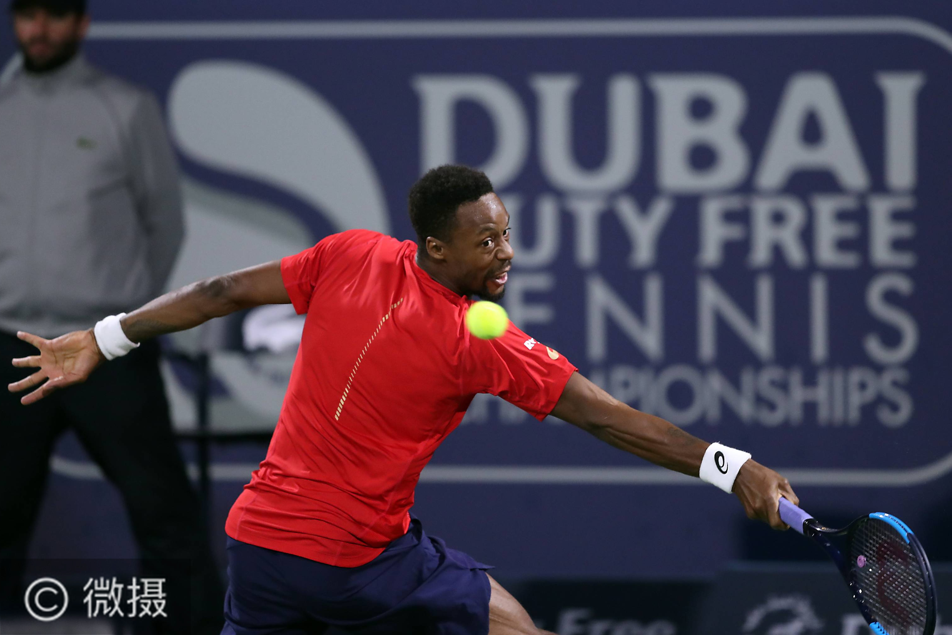 网球——迪拜锦标赛:焦科维奇晋级决赛。2月28日,法国选手蒙菲斯在比赛中回球。当日,在阿联酋迪拜举行的ATP迪拜网球锦标赛男单半决赛中,塞尔维亚选手焦科维奇以2比1战胜法国选手蒙菲斯,晋级决赛。微摄/新华社/欧新
