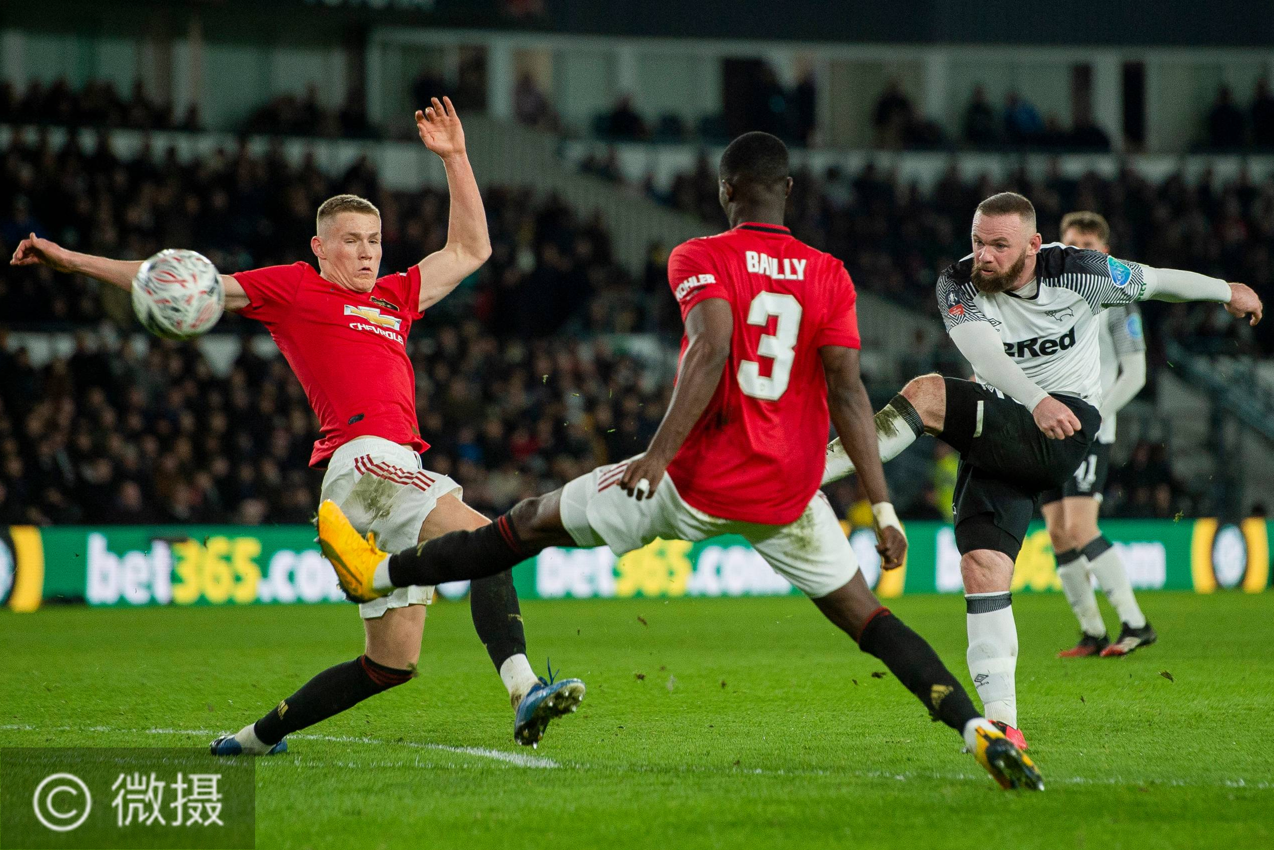 英格兰足总杯:曼联晋级八强。 3月5日,曼彻斯特联队球员麦克托米奈(左)与德比郡队球员鲁尼(右)拼抢。当日,在英国德比进行的2019-2020赛季英格兰足总杯八分之一决赛中,曼彻斯特联队客场以3比0战胜德比郡队,晋级八强。微摄/新华社/欧新