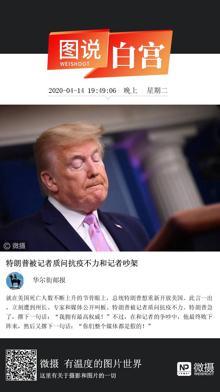 就在美国死亡人数不断上升的节骨眼上,总统特朗普想重新开放美国。此言一出,立刻遭到州长、专家和媒体公开叫板。特朗普被记者质问抗疫不力。特朗普急了,撂下一句话:“我拥有最高权威!”不过,在和记者的争吵中,他最终败下阵来,然后又撂下一句话:“你们整个媒体都是假的!”