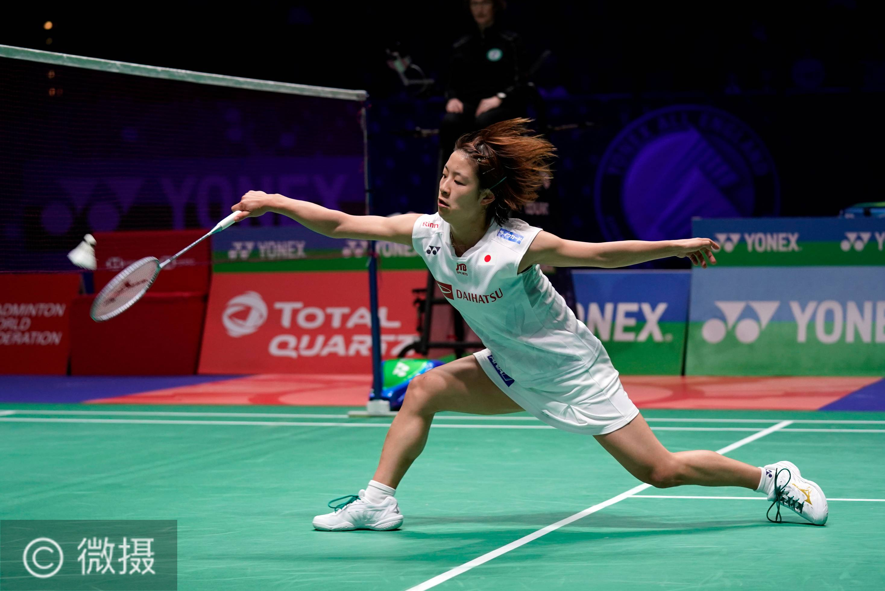 2020年3月13日,日本选手奥原希望在比赛中回球。当日,在英国伯明翰进行的全英羽毛球公开赛女子单打四分之一决赛中,日本选手奥原希望以2比1战胜印度选手辛杜,晋级四强。新华社/欧新