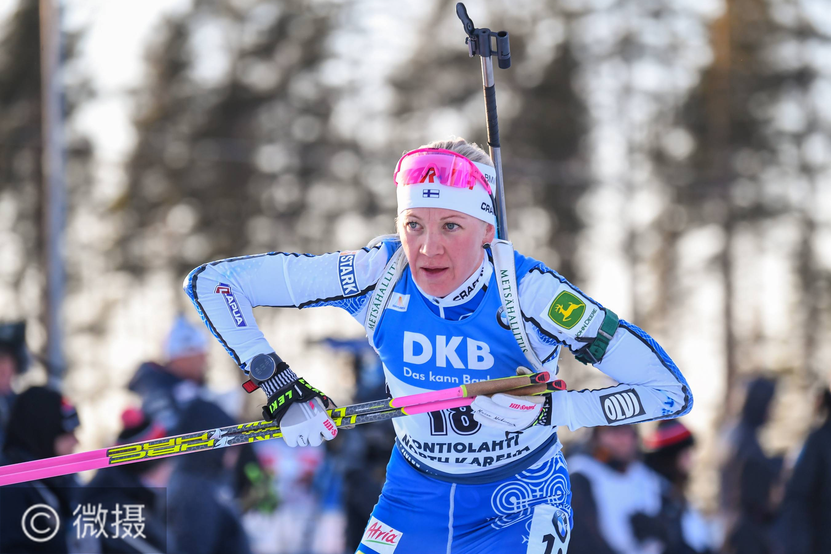 2020年3月14日,在芬兰孔蒂奥拉赫蒂,芬兰选手马卡莱宁在女子10公里追逐赛中。 国际冬季两项联盟13日宣布,由于新冠肺炎疫情的影响,冬季两项世界杯取消了孔蒂奥拉赫蒂的剩余比赛和下周挪威站比赛,提前结束本赛季。新华社/欧新