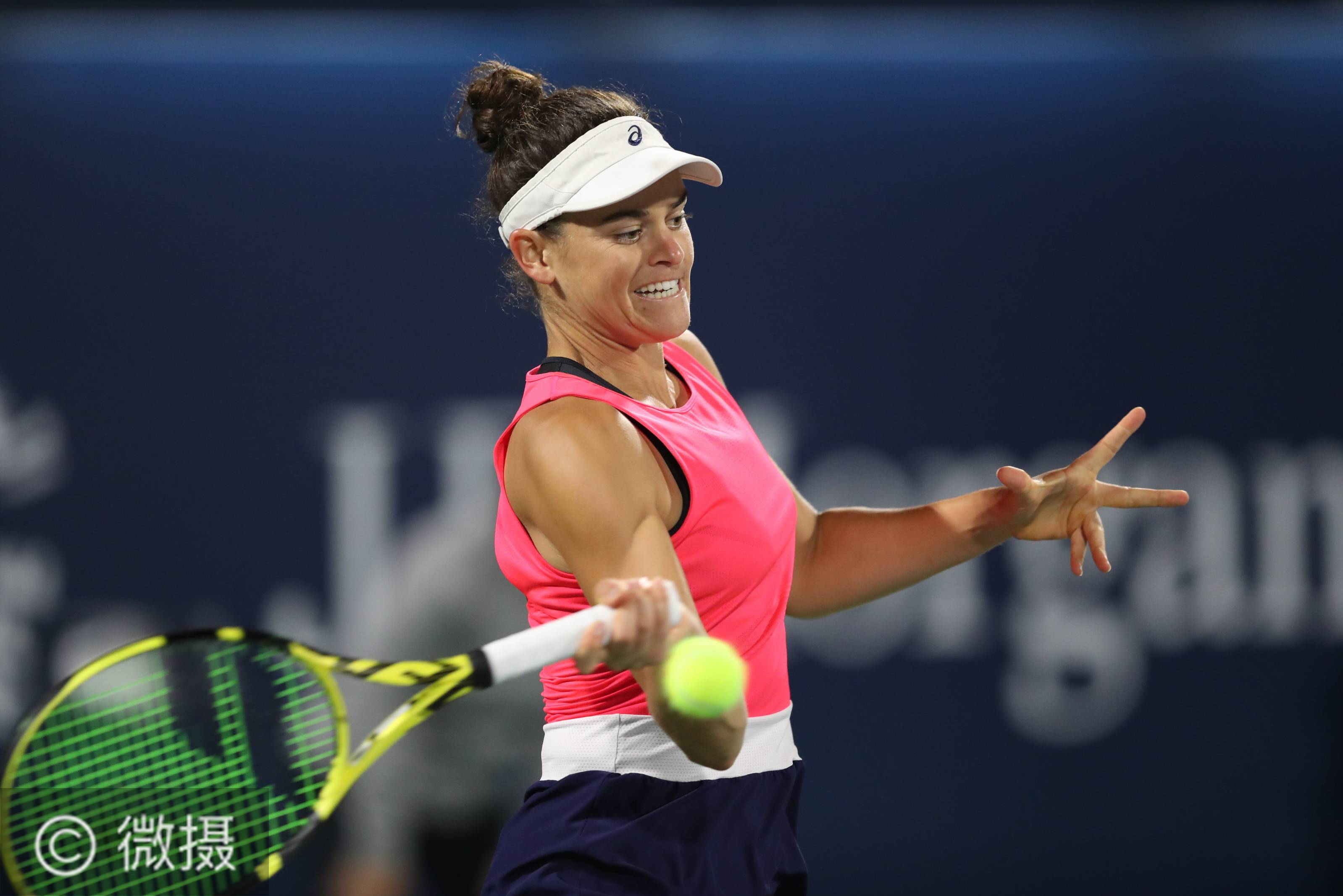 2020年2月21日,美国选手布拉迪在比赛中回球。当日,在阿联酋迪拜举行的2020年WTA迪拜网球锦标赛女单半决赛中,罗马尼亚选手哈勒普以2比0战胜美国选手布拉迪,晋级决赛。新华社/欧新