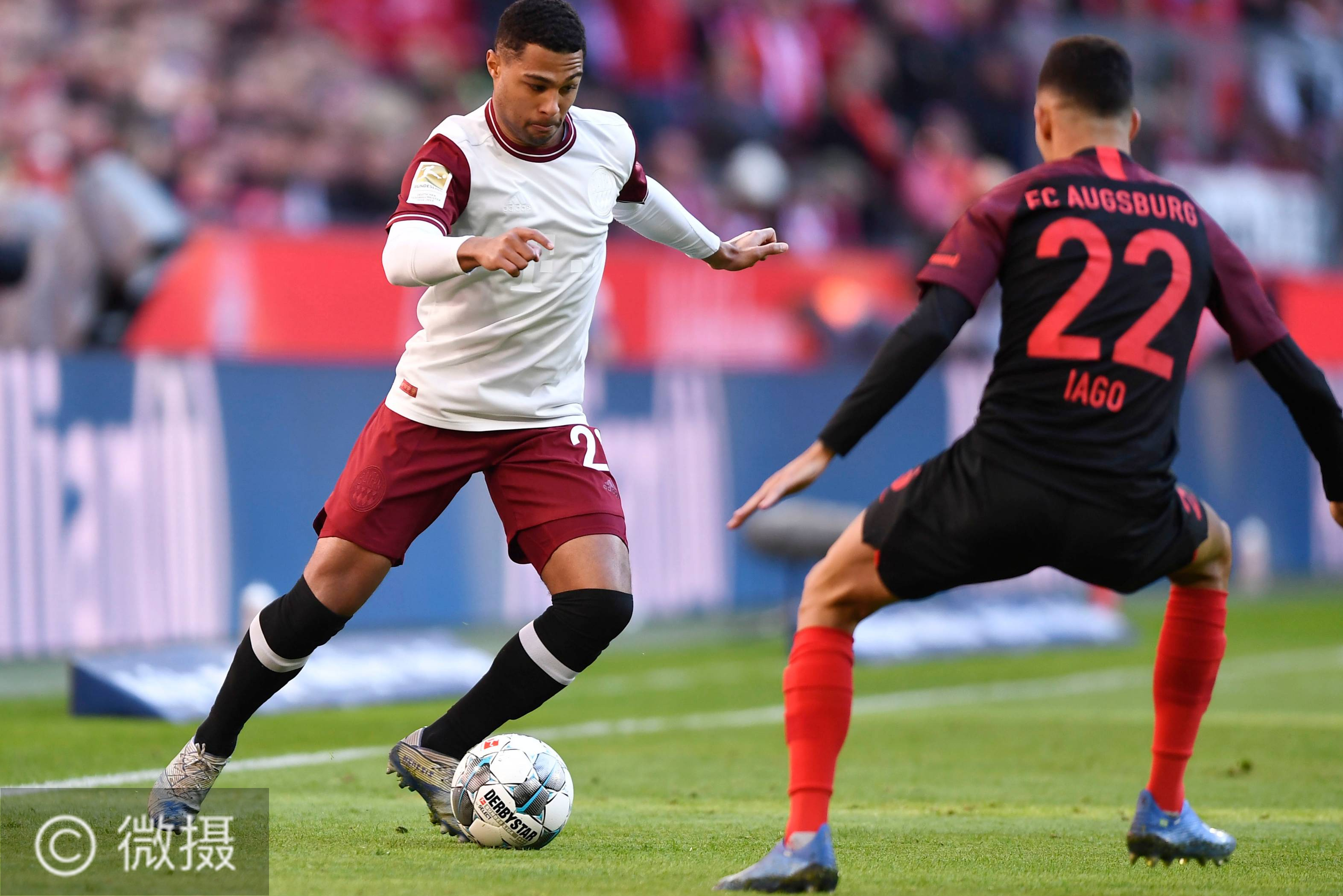 3月8日,拜仁慕尼黑队球员格纳布里(左)与奥格斯堡队球员亚戈拼抢。当日,在德国慕尼黑进行的2019-2020赛季德甲联赛第25轮的比赛中,拜仁慕尼黑队主场以2比0战胜奥格斯堡队。新华社/欧新