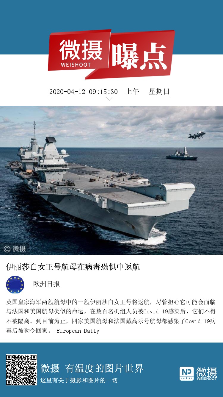 英国皇家海军两艘航母中的一艘伊丽莎白女王号将返航,尽管担心它可能会面临与法国和美国航母类似的命运,在数百名机组人员被Covid-19感染后,它们不得不被隔离。到目前为止,四家美国航母和法国戴高乐号航母都感染了Covid-19病毒后被勒令回家。 European Daily