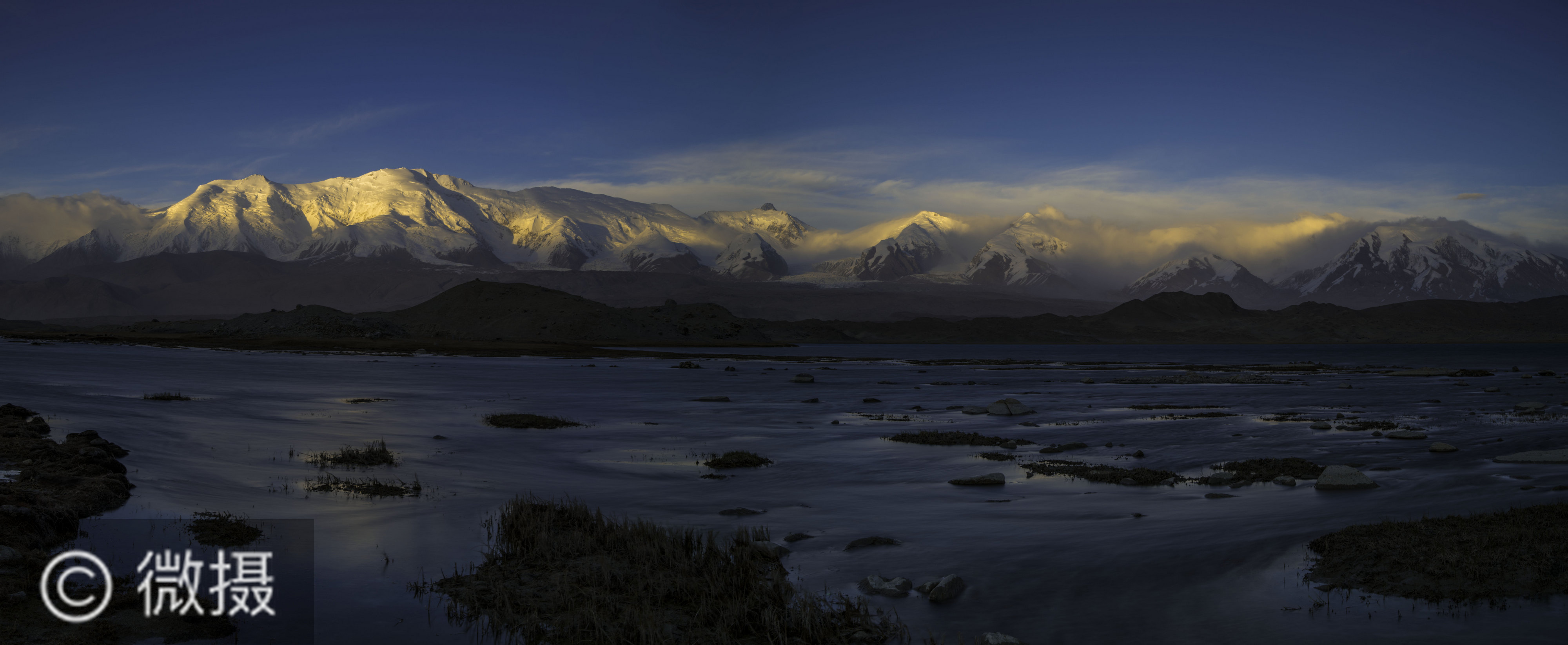 画卷-73(中国、阿克陶、2018) 这是公格尔久别峰沐浴在最后一抹夕阳下的全景图画面。公格尔九别峰,属于昆仑山脉,海拔7530米,位于中国新疆维吾尔自治区克孜勒苏柯尔克孜自治州阿克陶县布伦口乡苏巴什村,是西昆仑山脉第二高峰。由于山顶终年积雪,犹如牧民头上所戴的帽子,所以当地牧民
