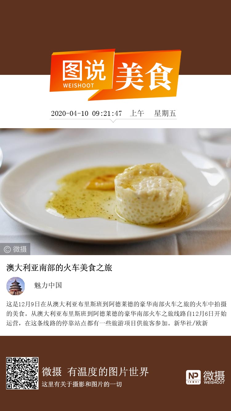 这是12月9日在从澳大利亚布里斯班到阿德莱德的豪华南部火车之旅的火车中拍摄的美食。从澳大利亚布里斯班到阿德莱德的豪华南部火车之旅线路自12月6日开始运营,在这条线路的停靠站点都有一些旅游项目供旅客参加。新华社/欧新
