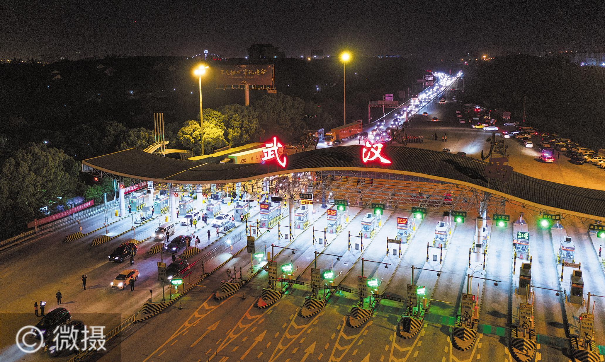 4月8日零时整,随着一声声“放行”令下,数以千计小汽车从武汉288个离汉离鄂通道驶向全省、全国。这一刻,期盼已久。历经整整76天管控,江城三镇交通恢复畅通;两江四岸,灯光璀璨,一场见证“解封”历史时刻的大型灯光秀震撼上演。此刻,武汉关的钟声敲响了。湖北日报全媒记者 柯皓 摄